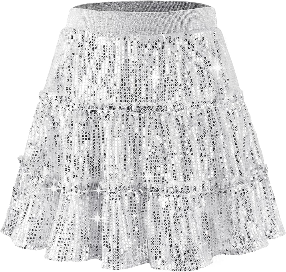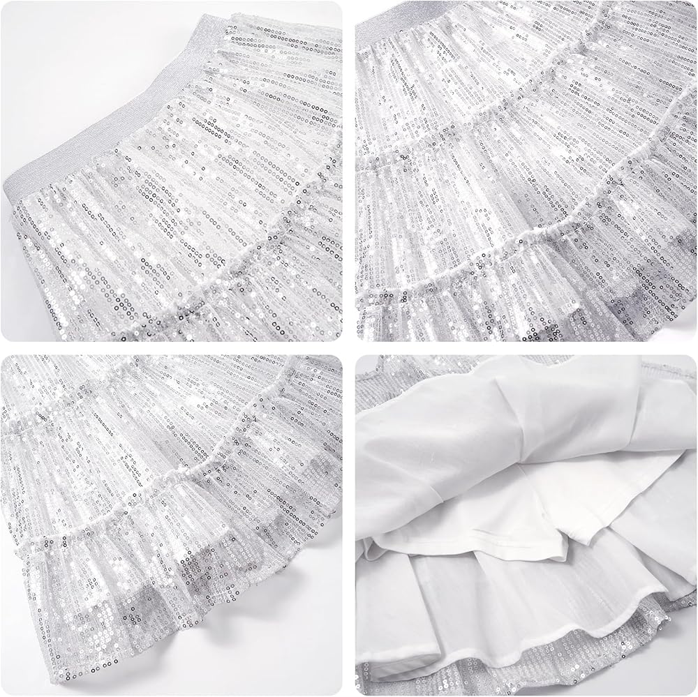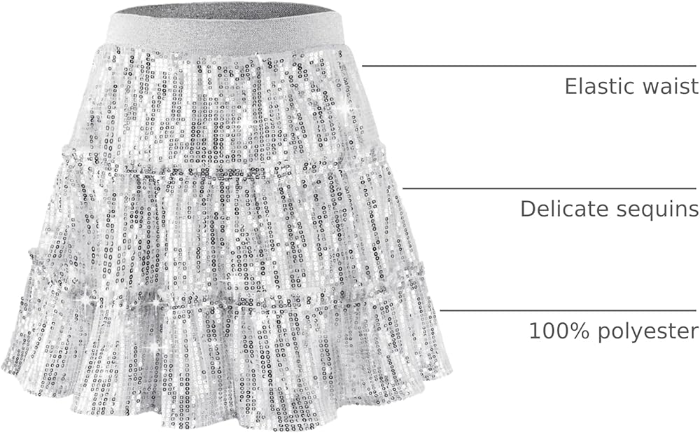 Design Features: Girls sparkle skirt with flowing A-line hem boasts an elastic waistband, providing a perfect fit. The ruffle design adds a touch of playful, while the shimmering sequins catch the light beautifully, making your girl like a princess