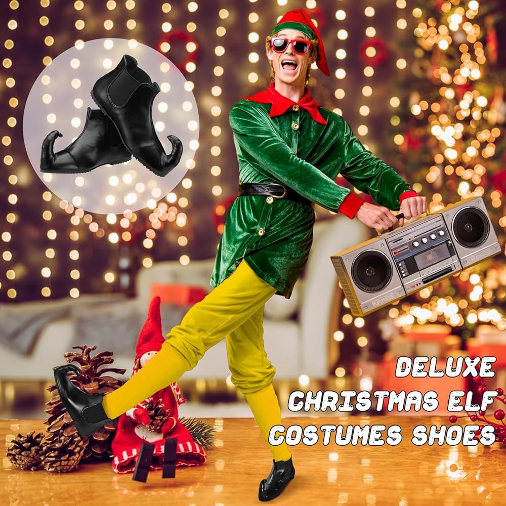 Luxury Elf Shoe Design: crafted from faux leather with rubber soles, these elf shoes feature soft linings and a classic pointed toe design; They are fun, warm, comfortable, and durable, making them a memorable choice to complement your elf costume for years to come