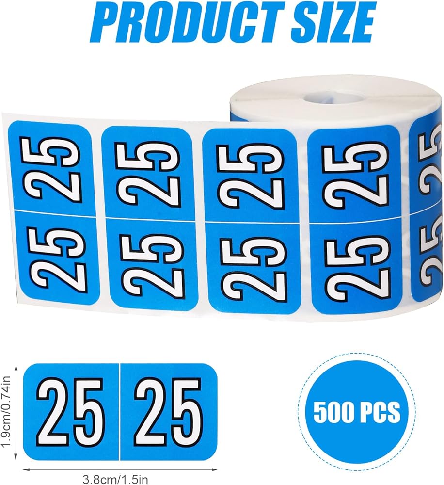 Product Included: You will receive 500 pieces of 2025 stickers in a roll, sufficient quantity to meet your decoration need. The size of each stickers is about 0.75x1.5in/1.9x3.8cm. Adopting foldable dividers design, you can easily see the number 25 from both sides when sticker pasted on file folders.