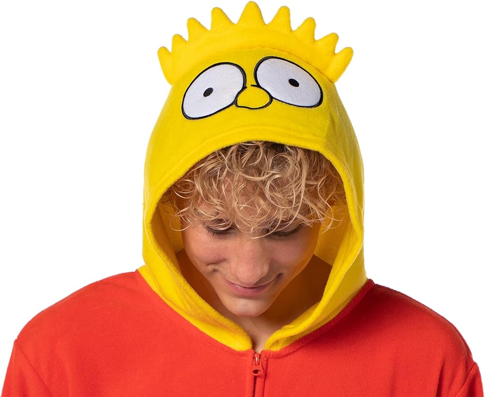 Character Hood with Embroidered Details: The hood includes embroidered eyes, nose, and 3D spikey hair completing the full Bart Simpson character look and adding an extra touch of fun to your lounging or costume experience.