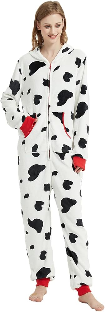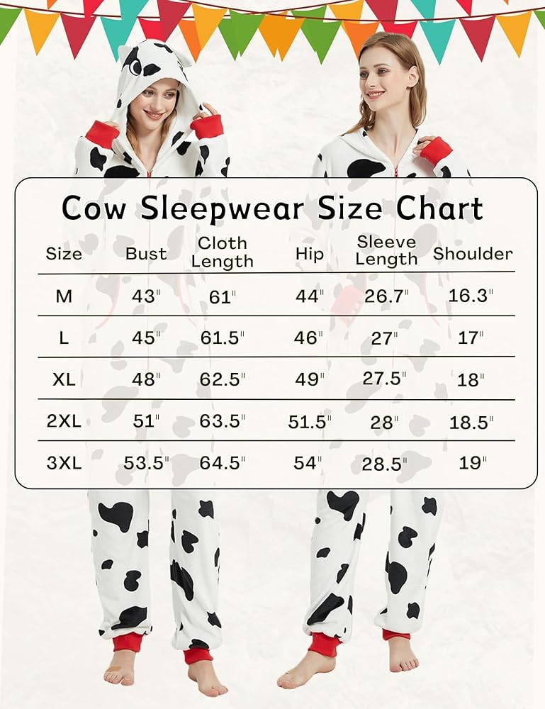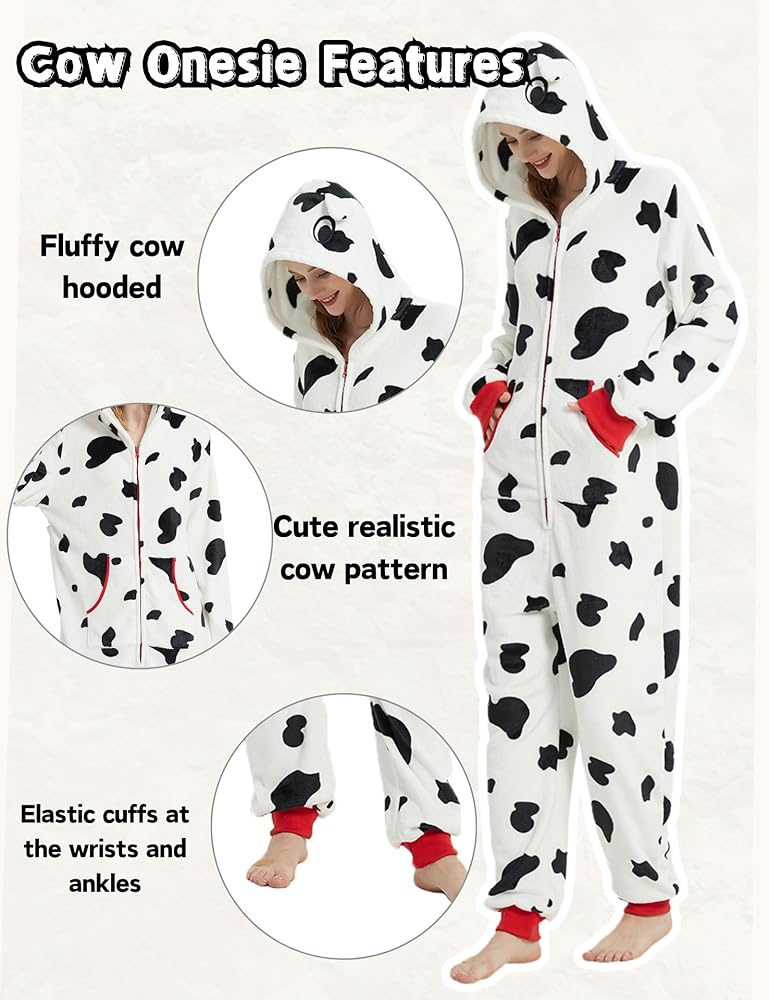 Funny Cow Animal Pajama Features: The full body pajama onesie for adult women are also fitted with elastic cuffs at the wrists and ankles. Featuring premium full-zipper, easy to put on and take off. Comfortable and warm, suitable for any season.