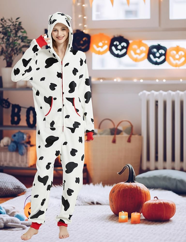 Super Cozy & Skin-Friendly Fabric: This adult onesie animal pajamas is made of polar fleece with flannel print and the fabric feels so cozy. Vibrant in color, It is also durable and resistant to pilling. These unisex adult cow costume onesie pajamas are unbelievably eye-catching, surrounding you in ultimate comfort no matter where you wear it. You are the highlight of the party!