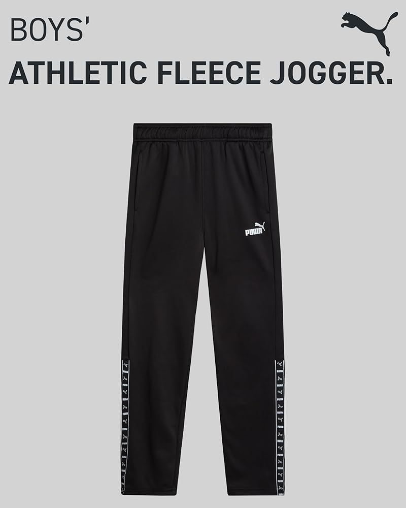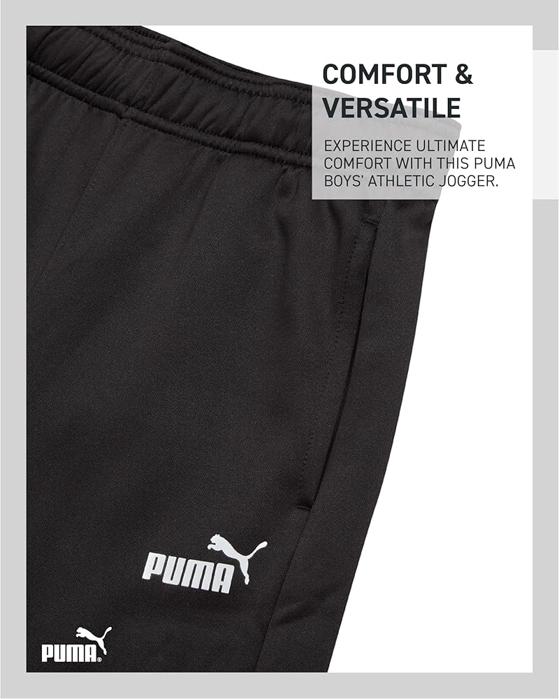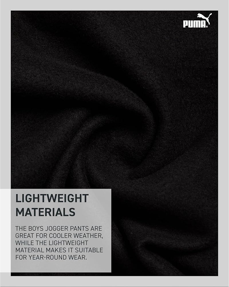 Discover the perfect blend of athletic performance and everyday comfort with the PUMA Boys' Sweatpants, designed to meet the needs of active young boys while keeping them stylish and confident. These jogger pants are crafted from high-quality fleece, providing a soft and cozy feel that keeps your child warm during cooler weather, yet breathable enough for year-round wear. Whether they're on the move during sports practice or lounging at home, these sweatpants ensure that your child is always comfortable and ready for action. The sleek, tapered design of these joggers is both modern and functional. Featuring elastic cuffs and a streamlined silhouette, these pants offer a snug fit that doesn't restrict movement, allowing your child to run, jump, and play freely. The elastic waistband is equipped with an adjustable drawstring, ensuring a secure and customized fit for growing boys. This feature makes these joggers versatile enough to serve as both casual wear and boys' uniform jogger pants, seamlessly transitioning from school to playtime. What sets these sweatpants apart is the iconic PUMA branding that adds a bold, sporty touch to any outfit. The classic PUMA logo is prominently displayed, symbolizing the brand's commitment to quality and performance. These joggers aren't just a piece of clothing; they're an embodiment of the PUMA values that inspire young athletes to be brave, confident, determined, and joyful. Your child will not only look great but also feel empowered to take on any challenge, whether on the field or off. These boys' jogger pants are available in a range of versatile colors, making them easy to mix and match with any top, whether it's a casual t-shirt or a cozy hoodie. The understated yet stylish design makes these joggers suitable for any occasion, from school days to weekend outings. They offer the perfect balance of style, comfort, and functionality, making them an essential addition to any young boy's wardrobe.