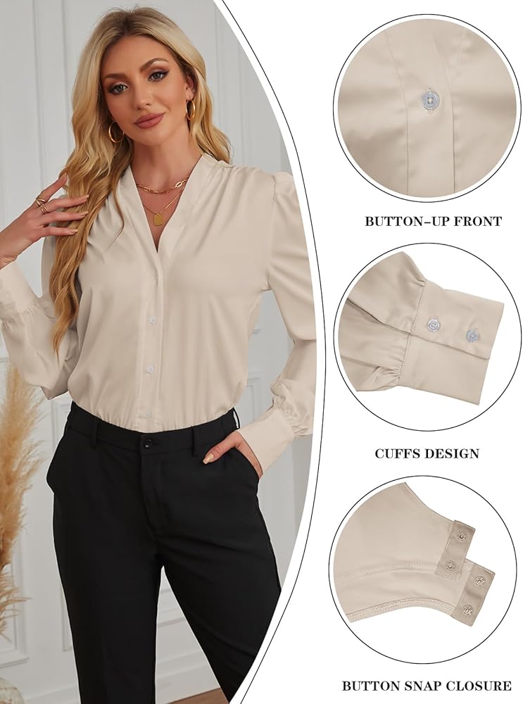 【Long Sleeve & Button Design】This women long sleeve body suit is a versatile piece because it features long sleeves and button cuffs that you can button up for a more formal look or roll up your sleeves for a more casual look, also providing the best choice for women to show their chic charm.