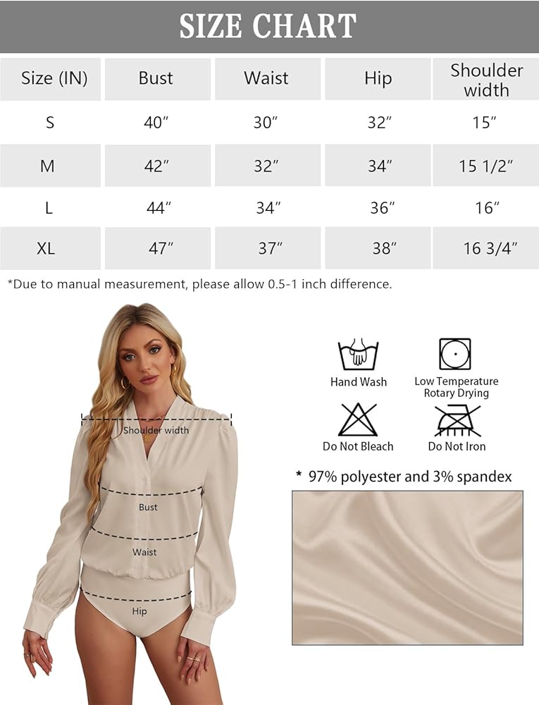 【Comfortable Material】Blouse Bodysuit for Women is made from 97% polyester and 3% spandex, offering a stretchy and comfortable fit. This business bodysuit for women designed in silk material with a smooth and lustrous surface. Our Sexyasasii bodysuit can enhance the overall elegance and create a classic and fashionable appearance.