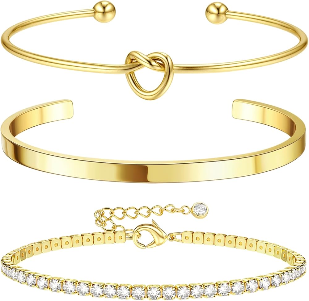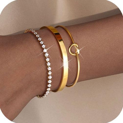 Dainty Gold Bracelets Set :This gold bracelets for women trendy are available in 5 different styles:gold beaded bracelets,gold cuff bracelets for women,cubic zirconia tennis bracelet,cuban link chain bracelet,love kont bracelet,paperclip bracelet.The stackable bracelets for women are an essential fashion item that you can wear alone or stack with other bracelets to create a unique mix-and-match style.