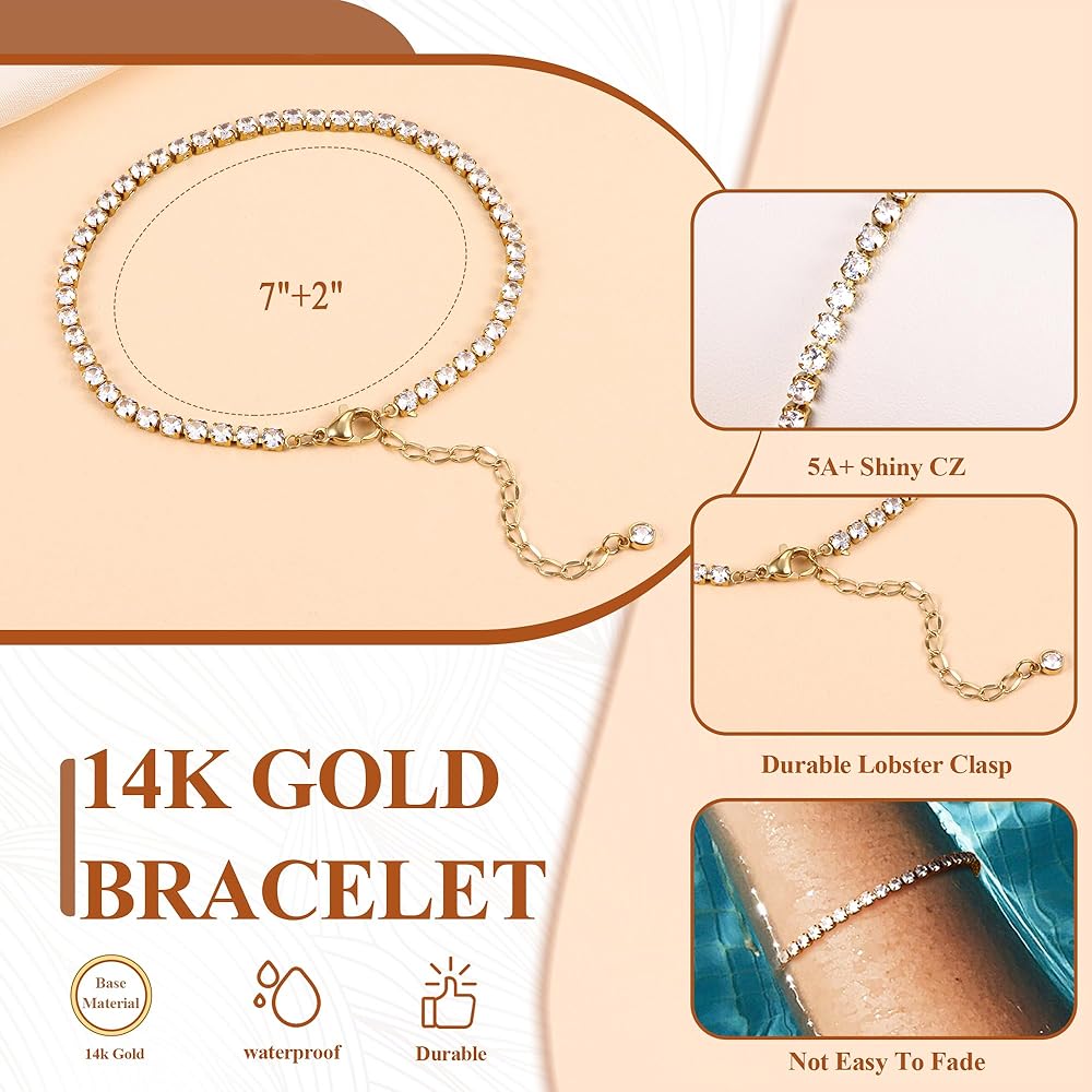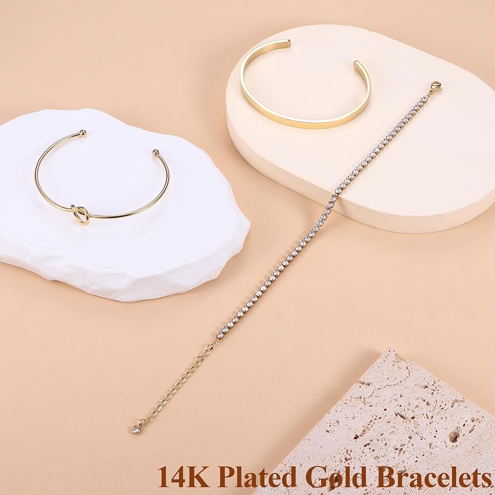 Tarnish Free Gold Jewelry :Are you still worried about bracelets fading and breaking easily? No need to worry anymore!These gold bracelet are made of high quality stainless steel with 14K gold pltaed and tested to ensure no tarnish,the 14k gold Bracelets for women features durable link construction and clasp for long-lasting durability.