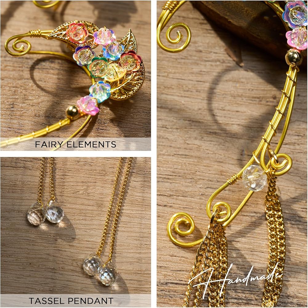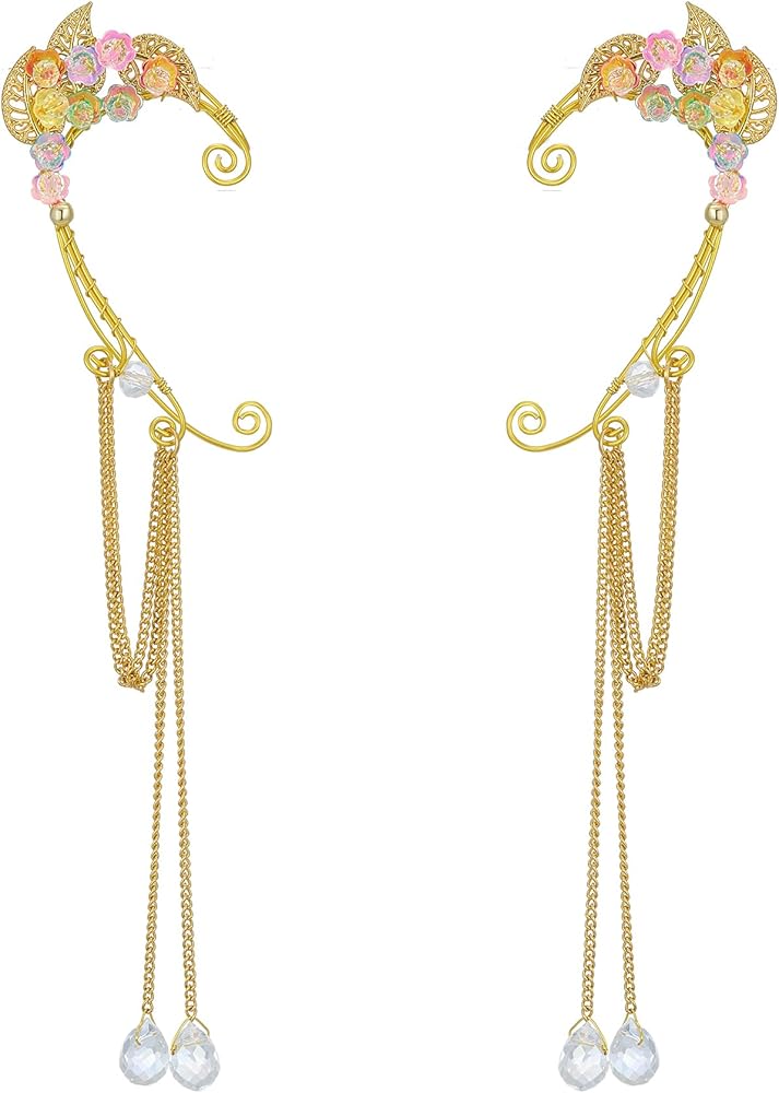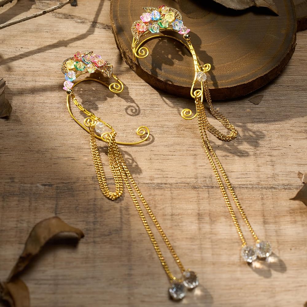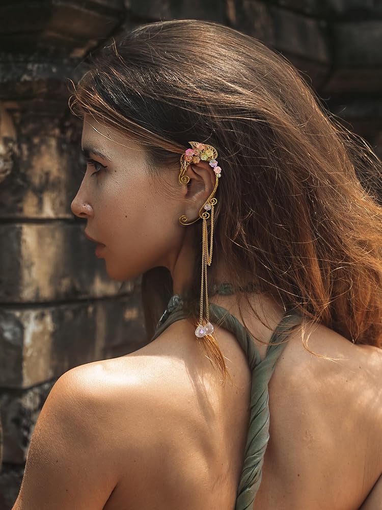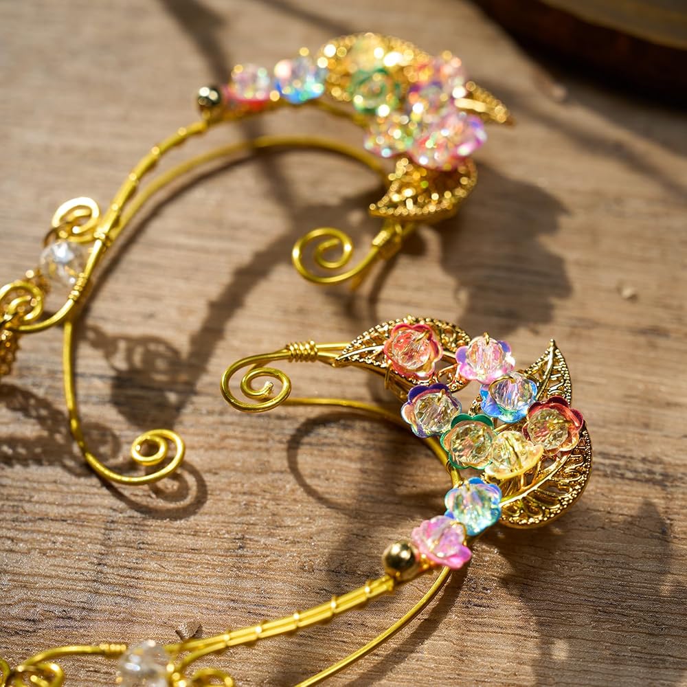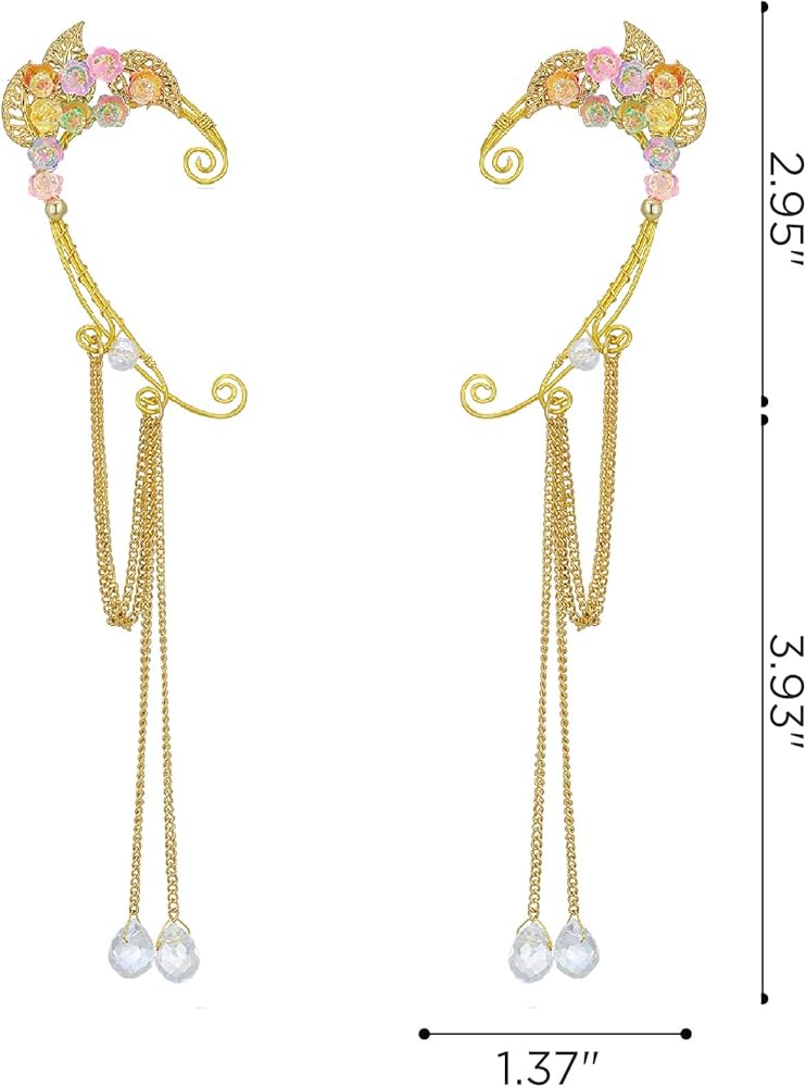 Unique Design: New creative elf ear cuffs style, new pattern flowers, trees, mushroom, leaves, and crystal beads. Looks beautiful and let you become a fairy or an elf.