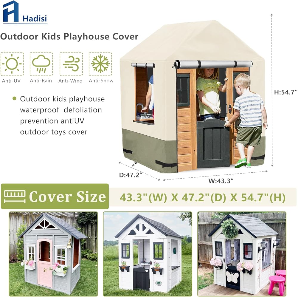 【Outdoor playhouse cover size】-The size of the playhouse cover is 43" W x 47" D x 55" H .Please measure the size of your playhouse carefully before purchase.