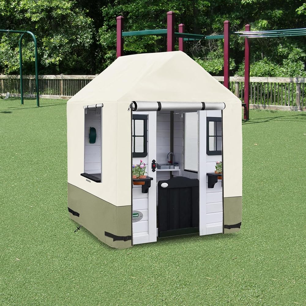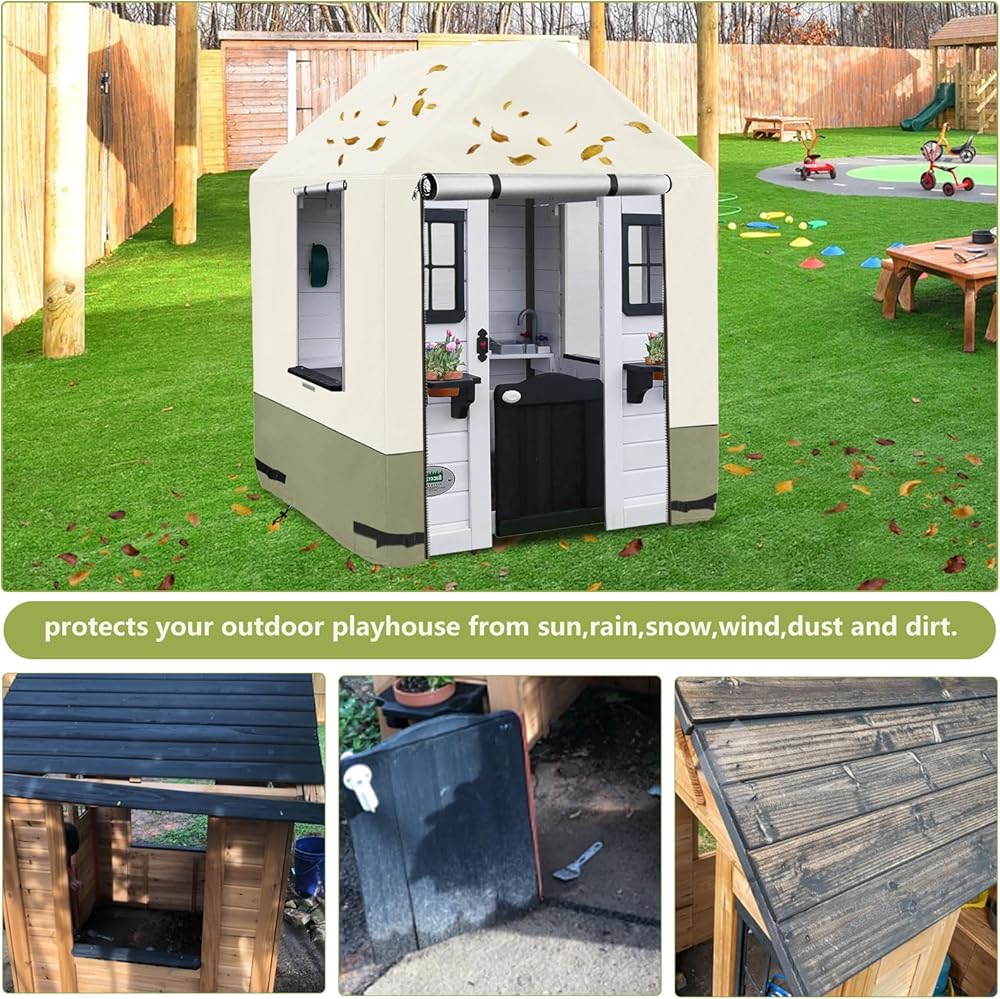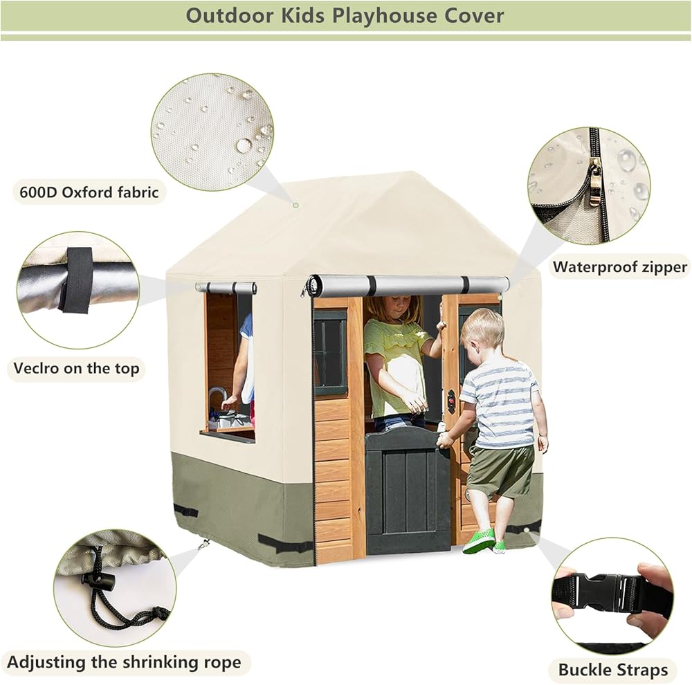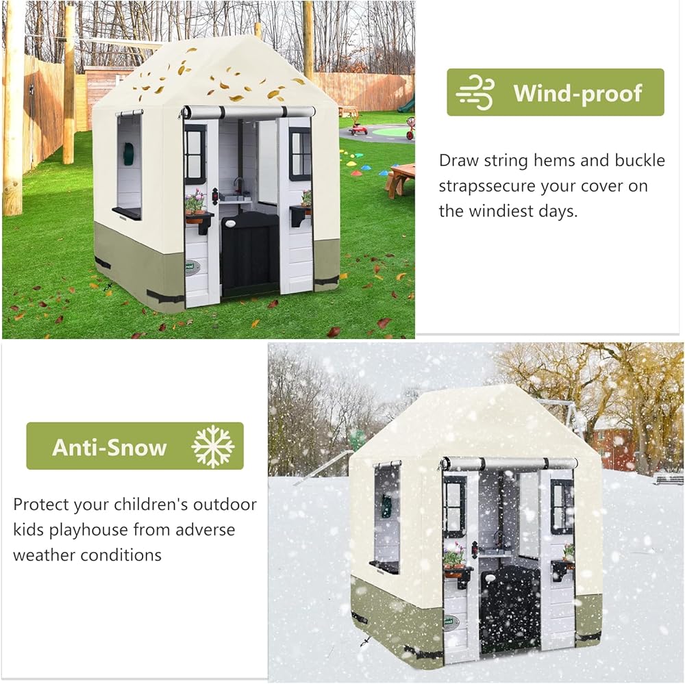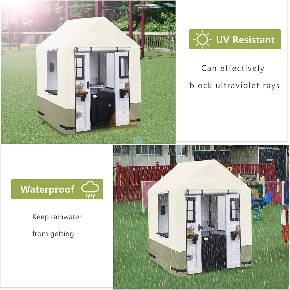 【Weatherproof Playhouse cover】-Our playhouse cover is made of 600D durable Oxford cloth with waterproof PU coating,which is tear-resistant,UV-resistant,waterproof,etc.You will no need to worry about the playhouse damaged by bad weather.Make your playhouse always look like new.