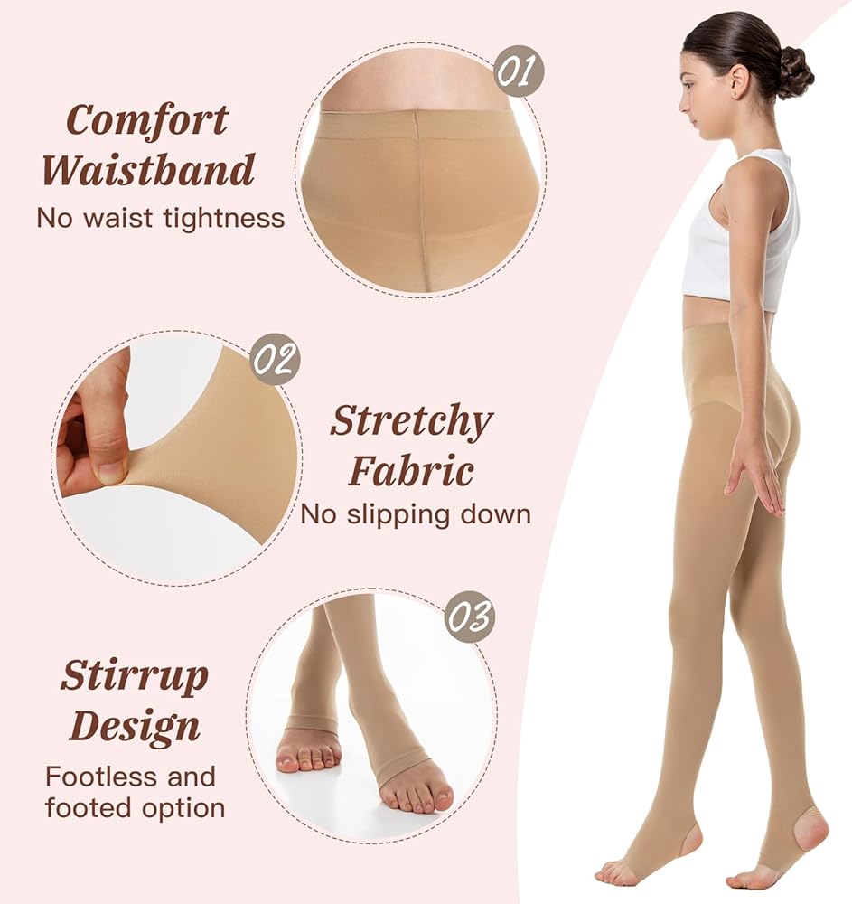 Stirrup design: there are tow holes at the bottom of the dance tights, which allow you to convert from footed to footless leggings easily and adaptable to various types of dance