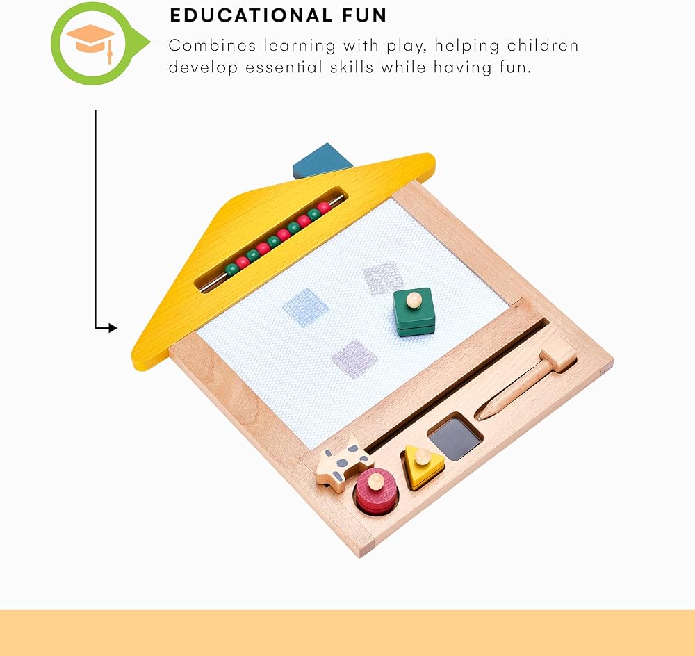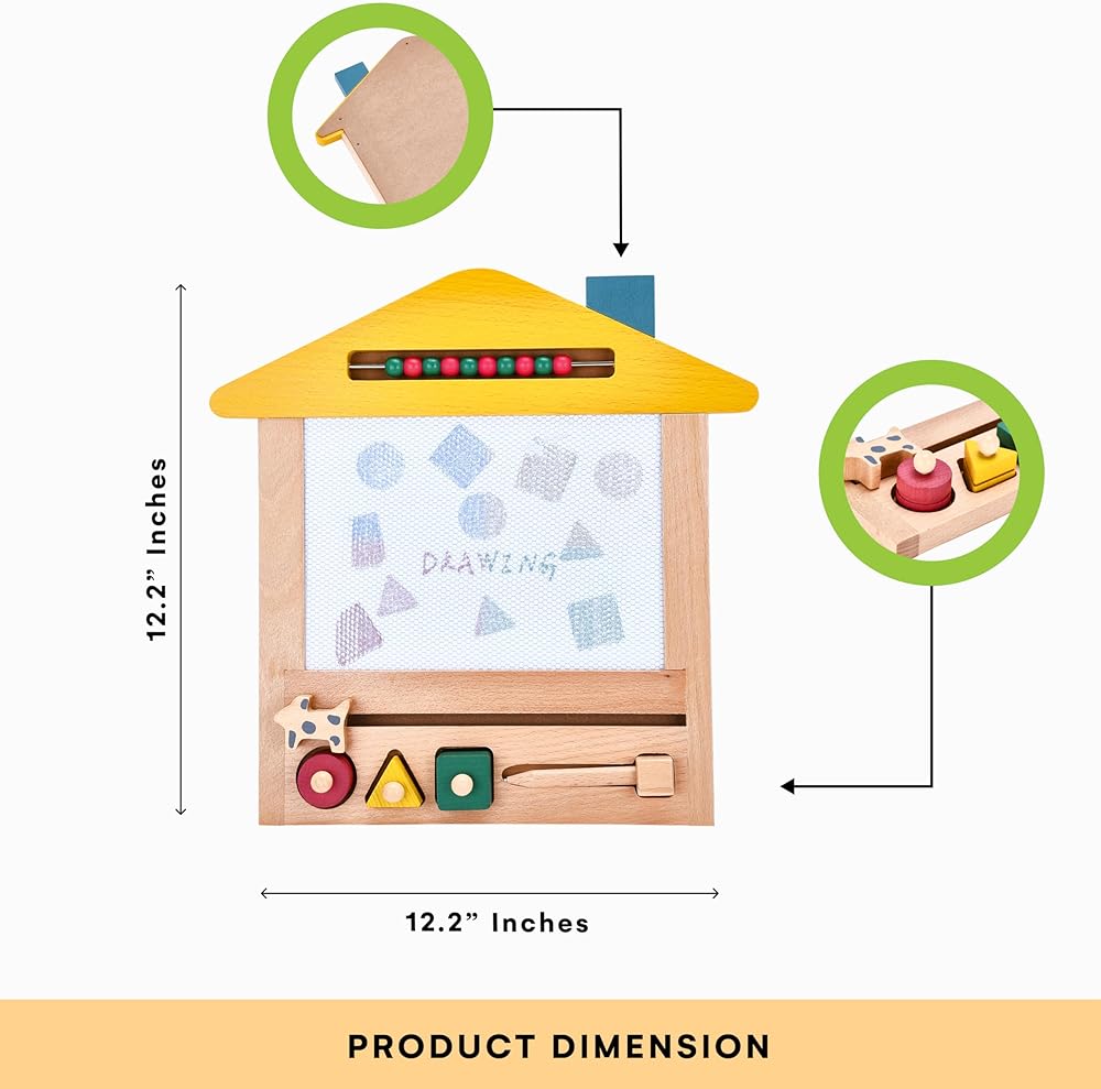 PORTABLE & CONVENIENT DOODLE BOARD: With its sturdy wooden construction and carrying handle, this baby drawing board is the ideal travel companion. It provides a perfect activity for kids on the go, keeping them engaged and entertained during travels