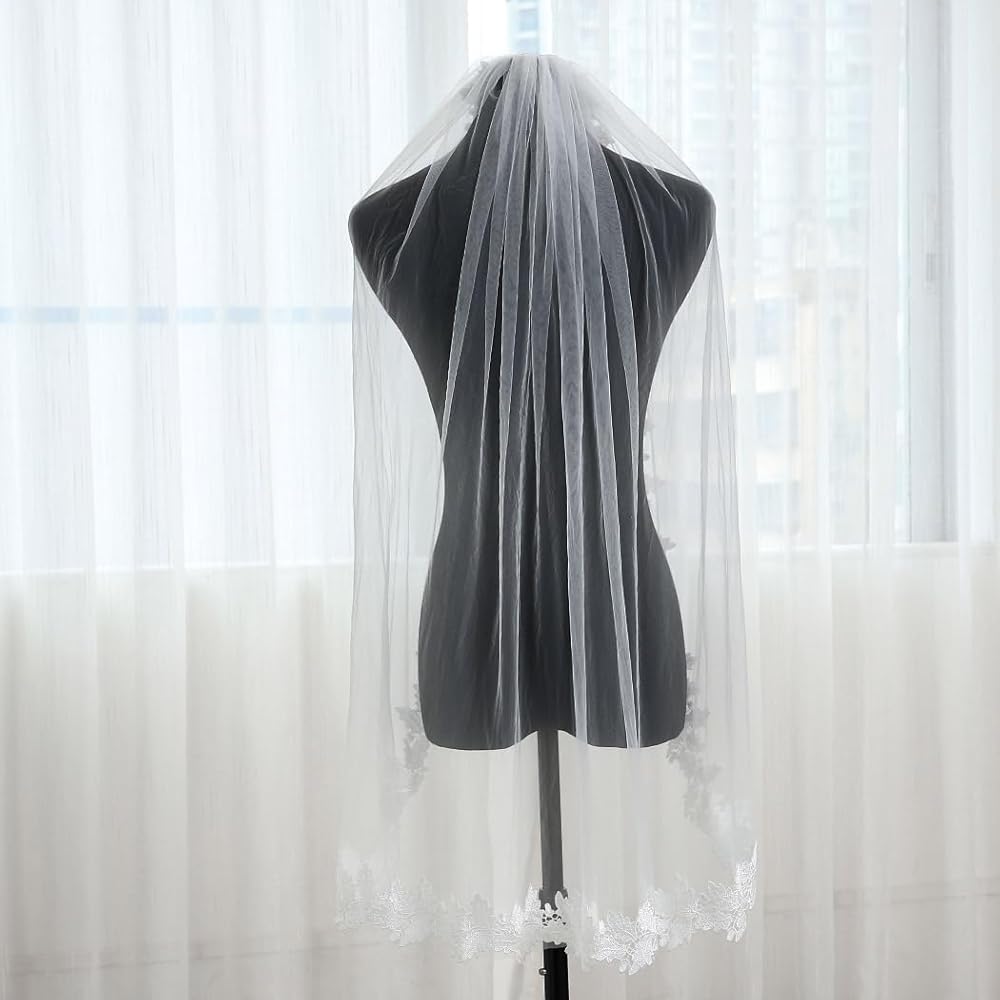 Latious Lace Wedding Veils Ivory Fingertip 1 Tier Bridal Tulle with Comb for Brides and Women