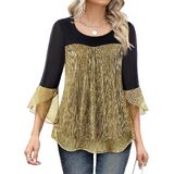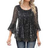 Fashion Party Top: Fall wedding guest dressy for womens blouse, form-fitting silhouette with a sheer overlay at the bustline,smooth lining hides curves discreetly.