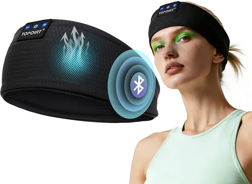 TOPOINT Sleep Headphones Headband Bluetooth 5.4, Sports Headband Earphones Sleeping Bluetooth Wireless with USB C for Women Men Sports Gifts Workout Jogging Yoga Insomnia Air Travel Meditation