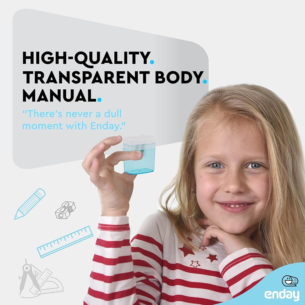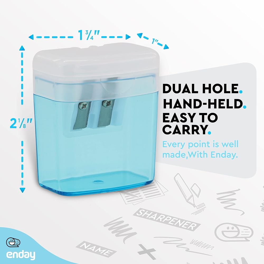Pencil Sharpener Dual Hole Manual Blue, Jumbo Crayon Sharpener with Cover and Bin, Handheld Color Pencil Sharpeners for Large & Standard Pencils, Also Available in Red, Green, Purple, 1 Pc – by Enday