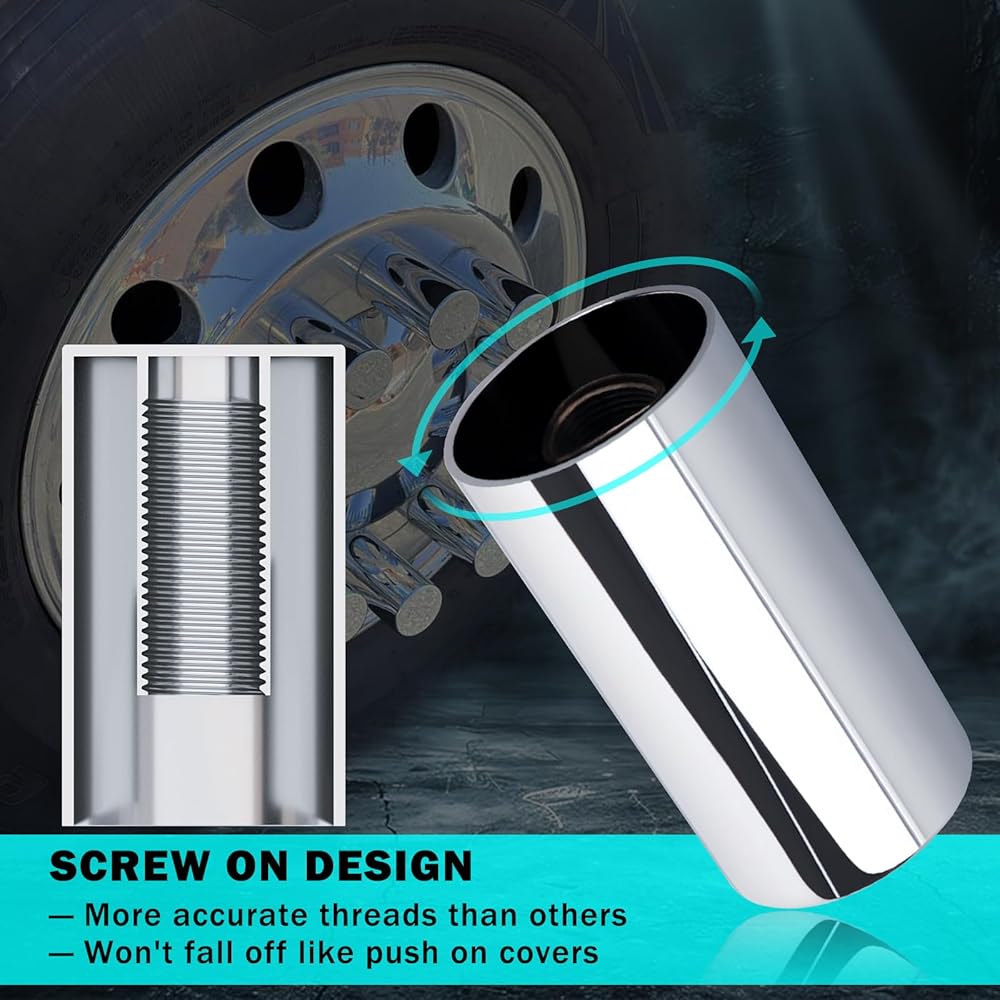 EASY INSTALLATION: The threads of our screw-on lug nut caps are very precise and standard, which can perfectly fit the bolts of your semi-truck trailer wheel hub. Just tighten it, and it comes with an installation tool, which is very easy to install. The thread design makes the installation very secure and will not fall off while driving