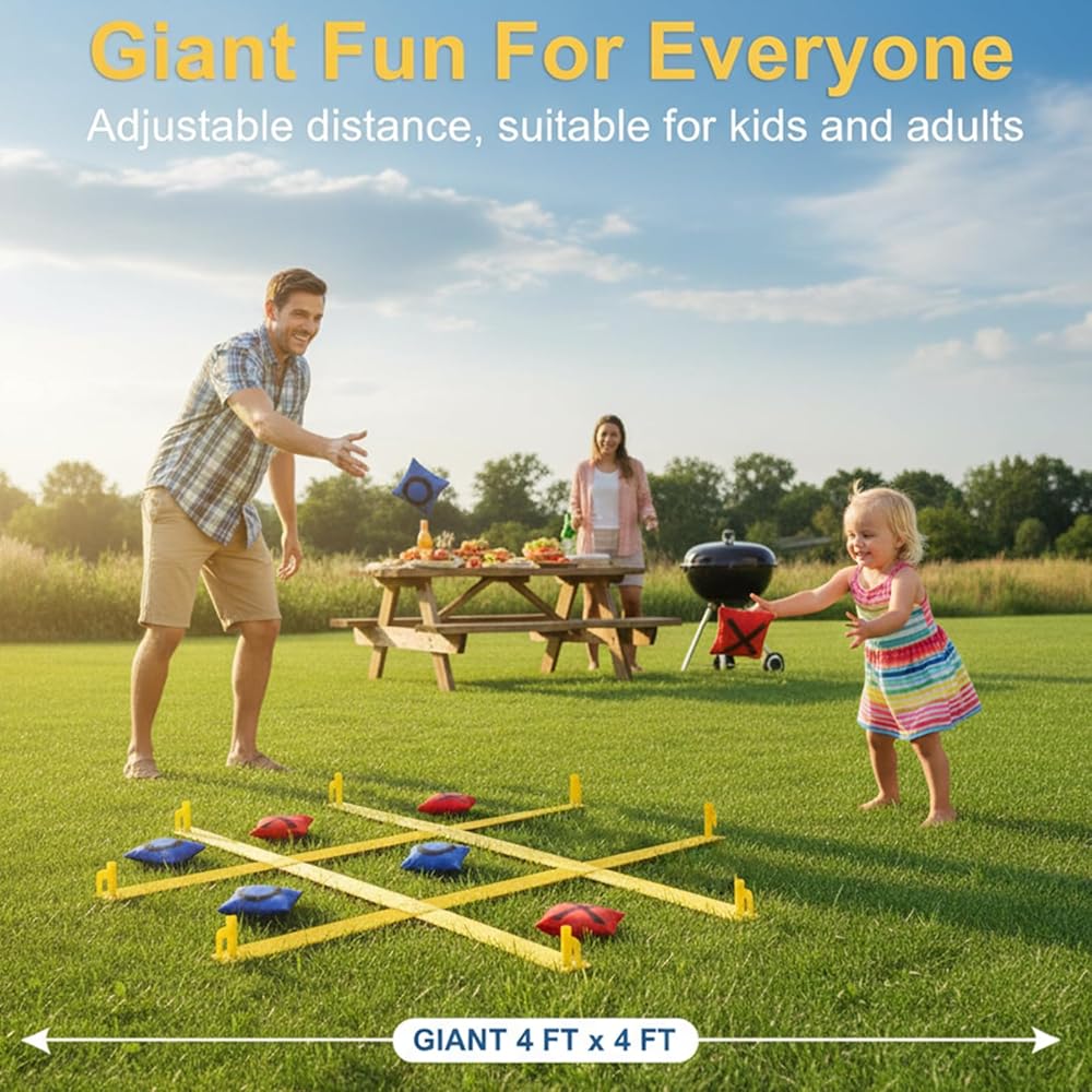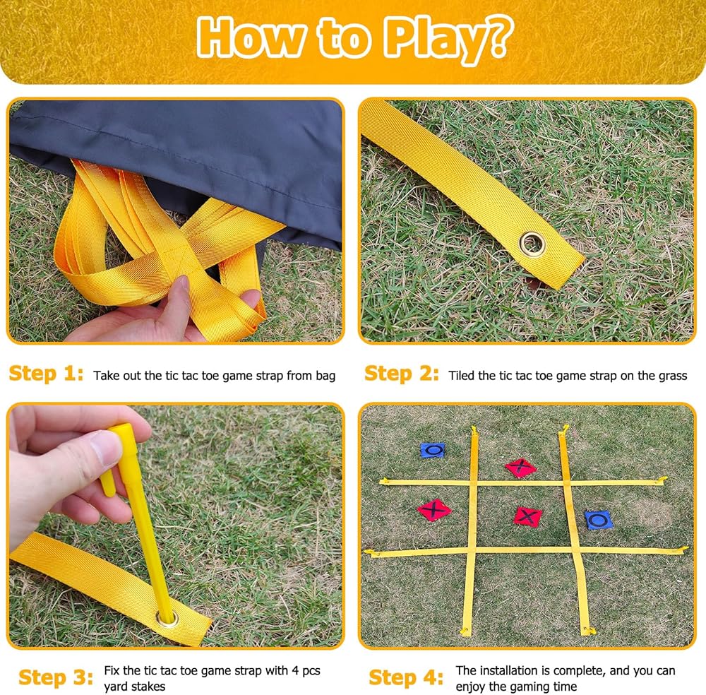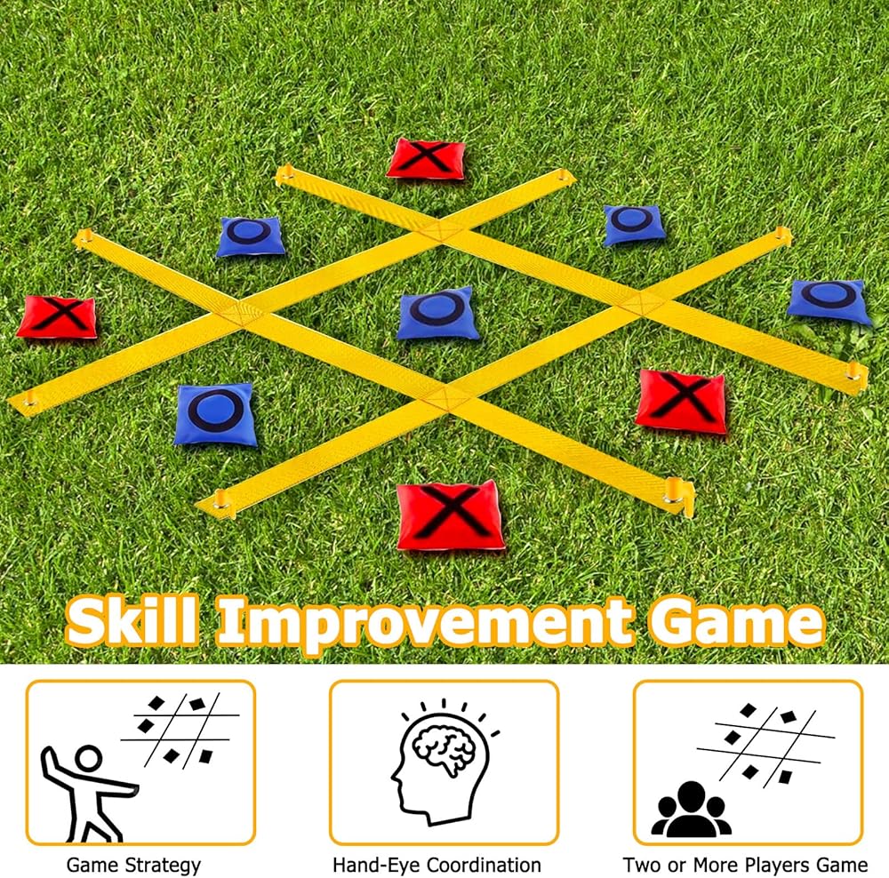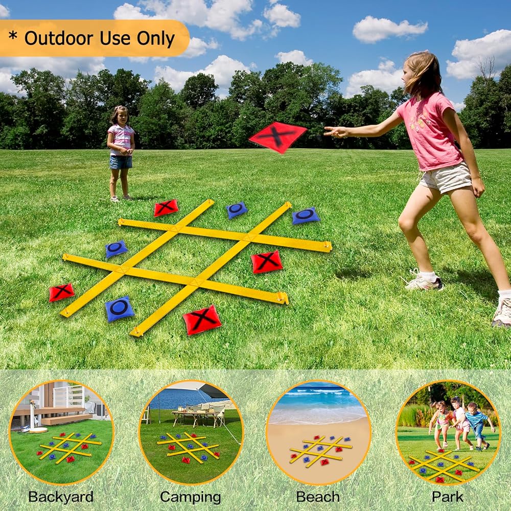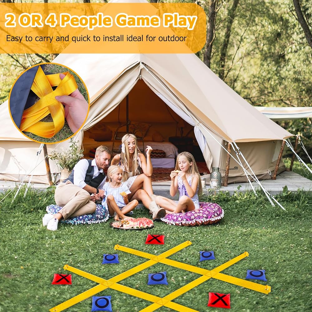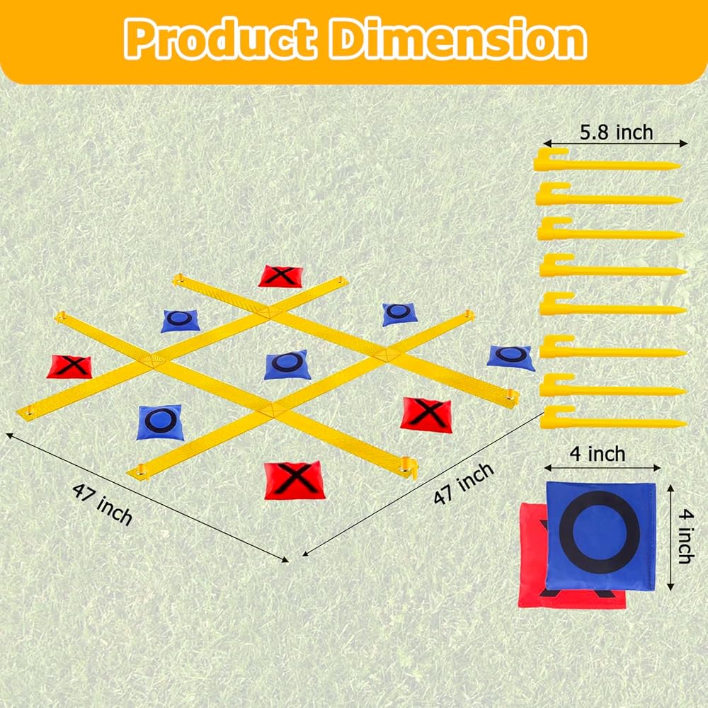 This oversized 4ft x 4ft tic tac toe games is perfect for fun family time in big backyards. Just unfold the games mat and secure with ground spikes for instant tic tac toe tossing entertainment right at home.