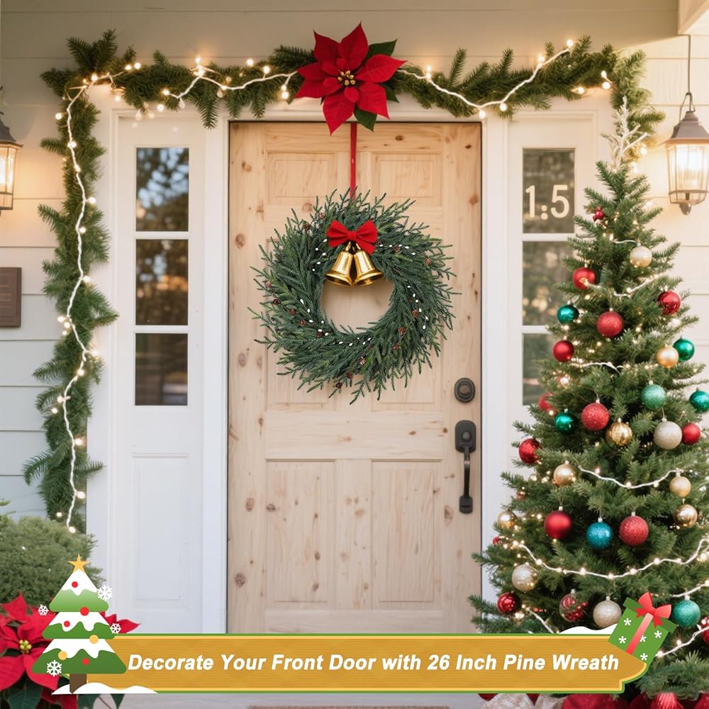 Real Touch Pine Wreath: The Artgar 26" pine wreath offers a realistic design, handmade with care. Its soft-to-touch and lush appearance make it an excellent choice for both indoor and outdoor holiday decor, adding an authentic Christmas wreath charm wherever it's placed