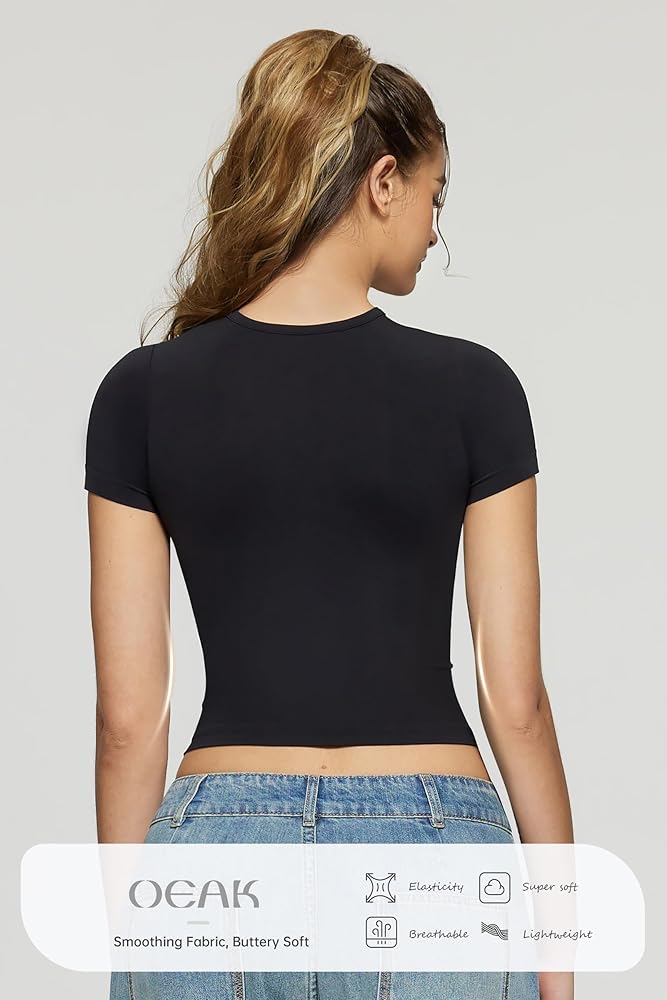Ultra Soft Non-See-Through Material - Women's Seamless T-shirts are made from 40s count yarn that is sooo stretchy and creamy, offering a lightly compressive feel that melts into your skin. The single-layer T-shirt is lightweight and breathable, addressing the issue of transparency. This fitted shirt conforms perfectly to all body curves, providing a super buttery hand feel as soft as a cloud wrapped in a hug.