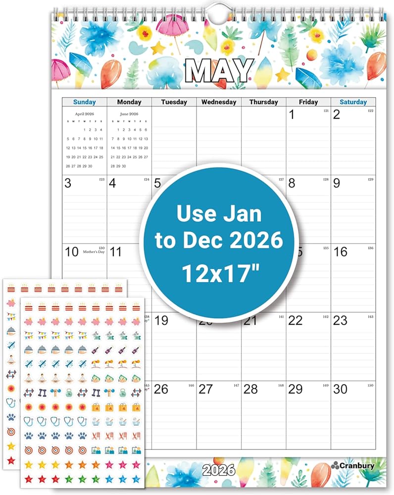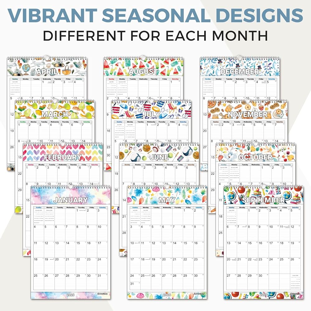 Large Wall Calendar 2024-2025: Use to Dec 2025. 12x17" hanging calendar. Each month has a unique colorful Seasonal design. Monthly wall calendar or desk calendar