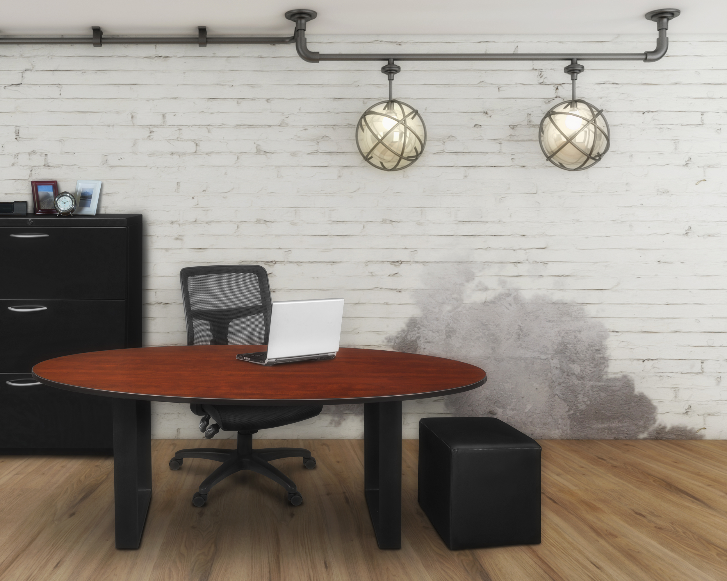 Build your office from the ground up with the structure collection. These versatile tables can double as desk shells for a completely modern office look. Open leg bases are constructed of durable metal and finished in a stylish matte grey to match any decor. Tabletops mount to offsets on the legs and give them a modern "floating" look. The 42 x 24-inch tabletop is constructed of a thermal fused melamine laminate that is 1-inch thick and finished with a black edge band. Laminates are scratch, stain and scald resistant and wipe clean easily. Leveling glides keep the tabletop level and are easy to adjust. The structure collection is backed by a 10-year limited manufacturer's warranty.