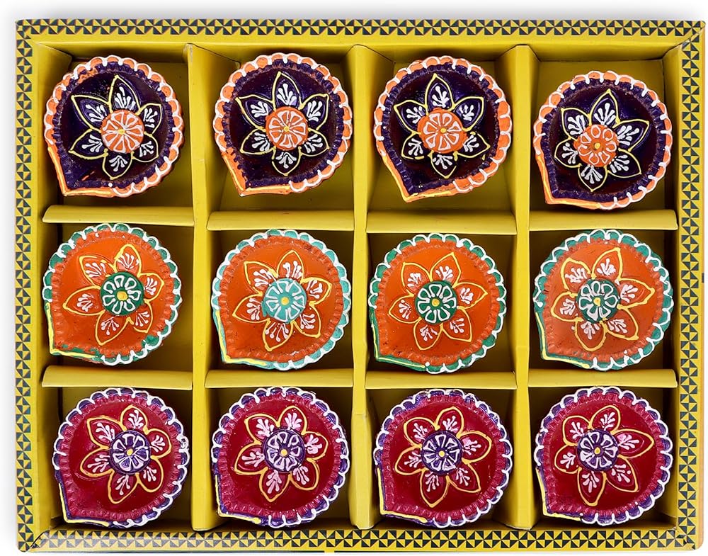 PACK OF 12: These Decorative Diyas for Diwali are packed in a very beautifully designed Diwali Gift Box & Can be Used for Diwali Return Gifts & Home Decor Accent.