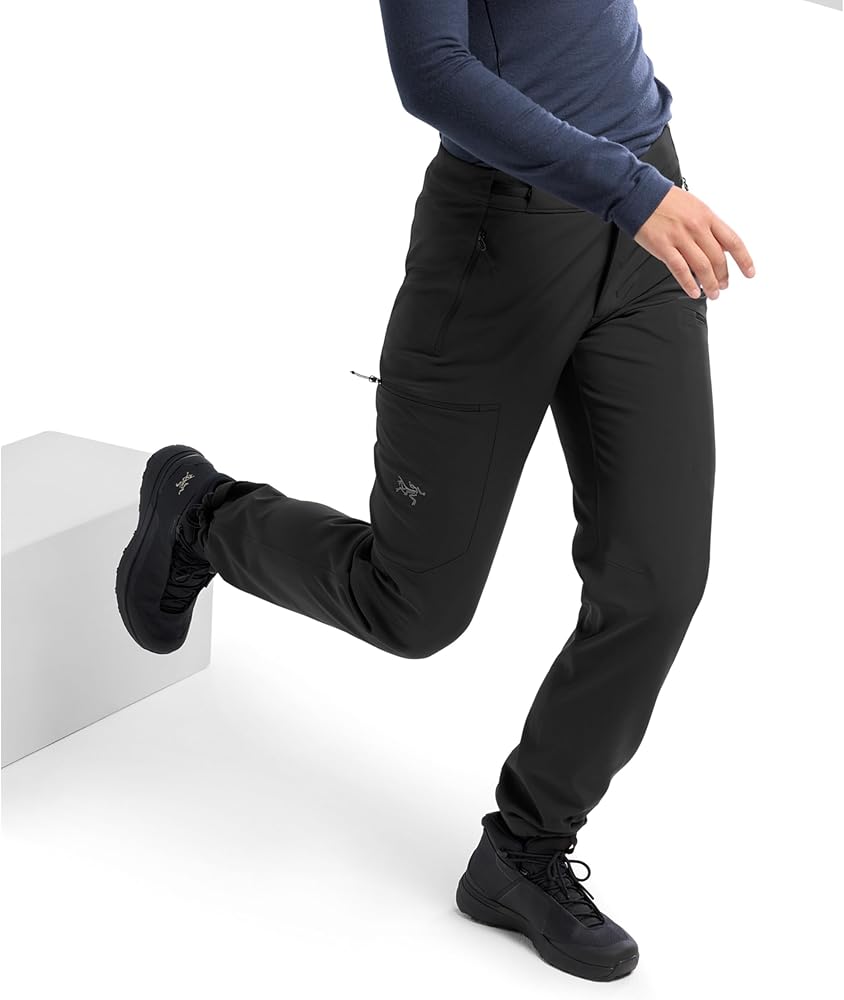 Hardwearing, breathable Fortius™ 2.0 softshell fabric has an efficient warmth-to-weight ratio, excellent durability, wind resistance, and stretch |FC0 DWR (Durable Water Repellent) finish repels moisture |Taped seams for weather resistance, a low-profile finish, and added strength |Low-profile adjustable waist belt secures the fit, sits comfortably under a hipbelt or harness |Zippered hand pocket and thigh pocket provide secure, accessible storage |Corded loop at cuff creates a gaiter to seal out weather and trail debris |Regular fit with articulated patterning for mobility and comfort