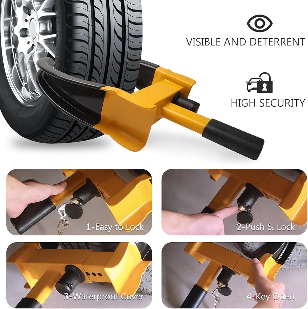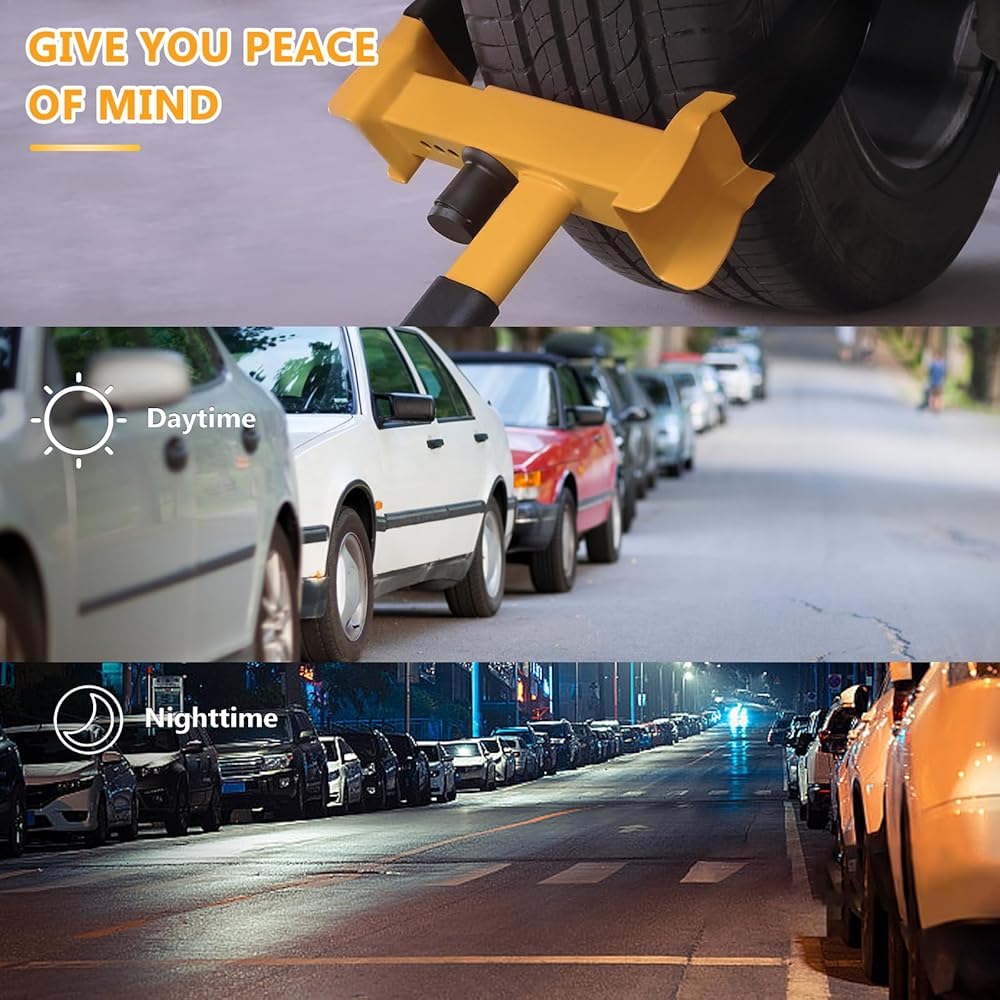 MaySpare Universal Wheel Lock, Heavy Duty Tire Lock, Automotive Anti-Theft Lock for Cars, SUVs, Motorcycles, Golf Carts, Bright Color for Deterrence, with 3 Locks(Yellow-Black)