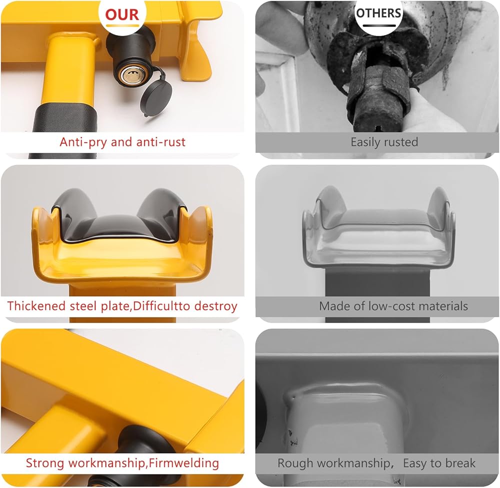 High Security:Tire lock adopts two high-visibility color schemes, which can ensure increased visibility, deterrent effect, and improved security to ensure the safety of the vehicle