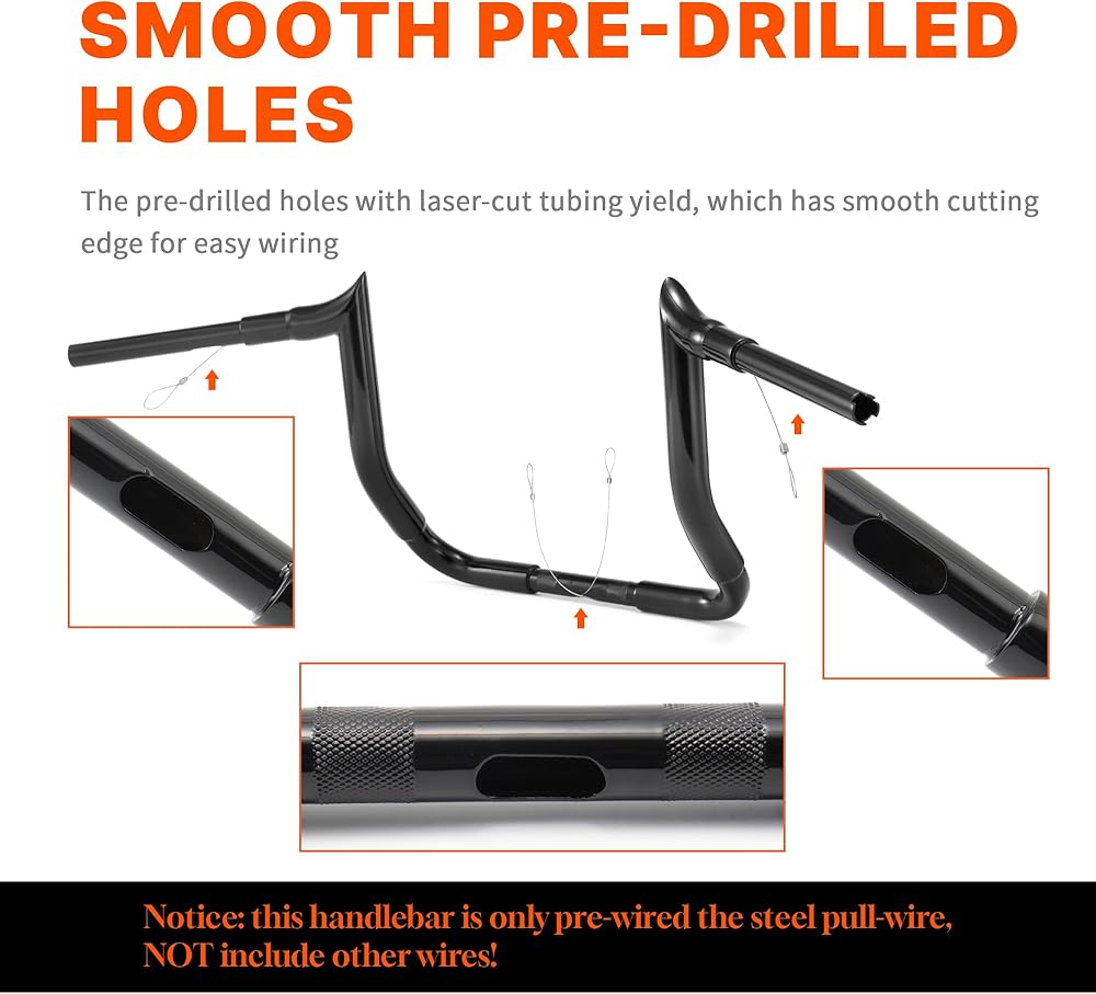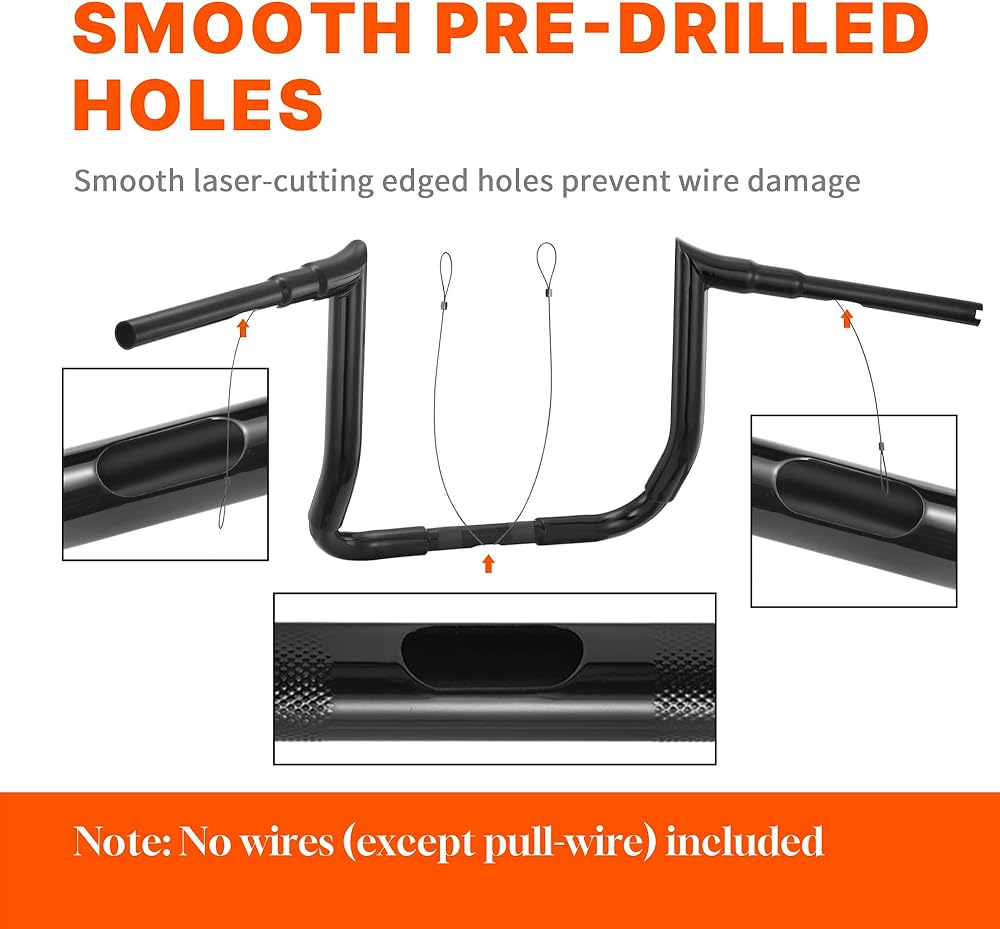 Improved Wiring Convenience: The 1-1/2" fat Electra Glide Handle Bar with a thicker bar to provide extra space, make wiring your bike effortless and convenient. Additionally, the professional design offers improved control and handling, enabling you to confidently navigate various road conditions and enjoy a smooth and responsive ride.