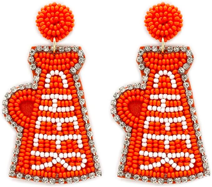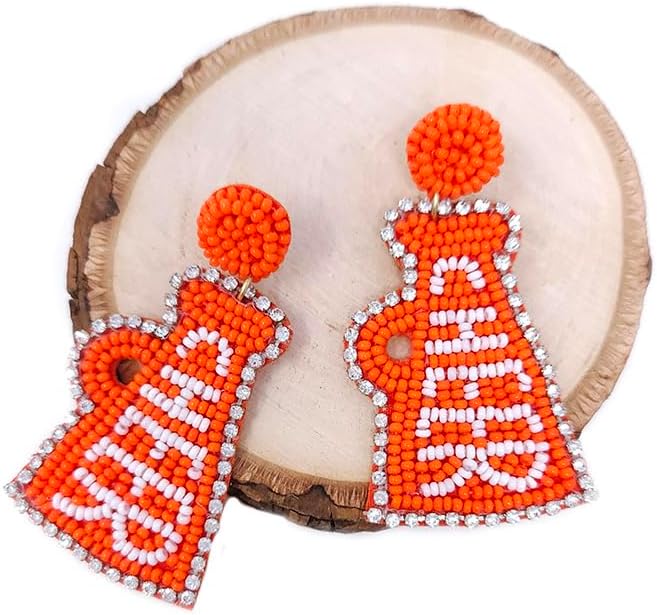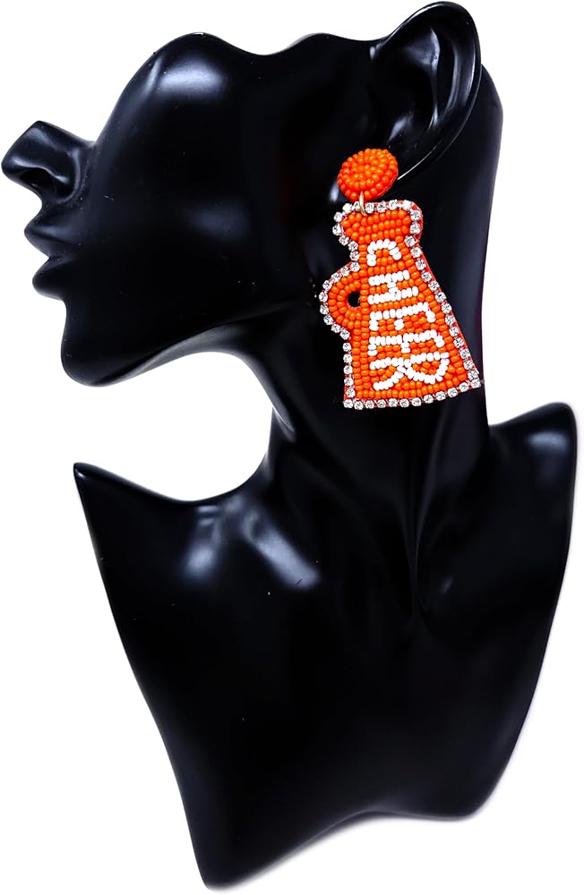 Beaded Cheer Football Post Earrings Handmade Cheer Football Earrings College Sport Gameday (Orange/White)
