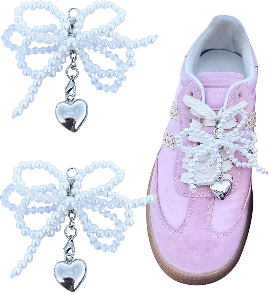 【Pearl Bowknot Shoe Charms】Designed for women girls attach bow charms to your sneakers dress shoes featuring a vibrant and charming outfit.