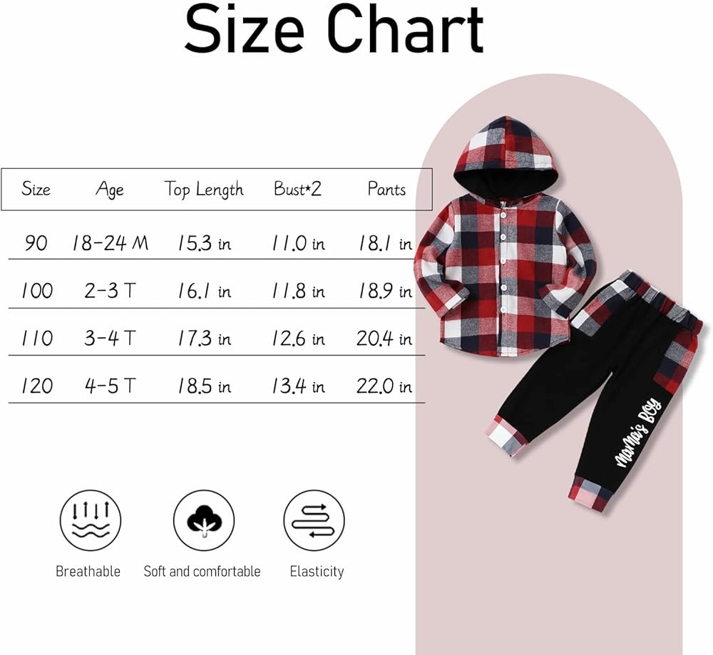 Design: The little boys clothes are set of a blue plaid boys button down shirt long sleeve and a black pants for boys, looks so trendy. Toddler boy pants with elasticatedated waistband fits different body types. Have two pockets. This boys' clothing sets deserve to be liked by boys