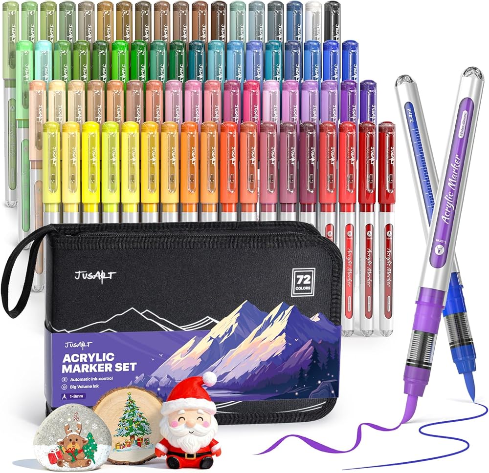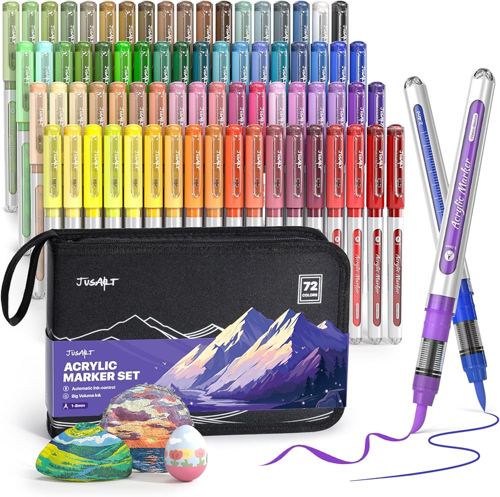 Performs Well on Various Surfaces: Acrylic paint pens set is not only ideal for adults, artists, and students as art supplies but also perfect for DIY projects. It easily creates cute designs on paper, stone, rock painting, Halloween pumpkin painting, canvas, fabric painting, glass, plastic, wood, metal, ceramics, and more