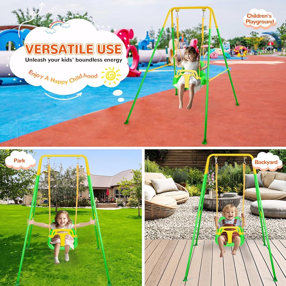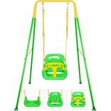 3-in-1 Toddler Swing Set, Indoor & Outdoor Baby Swing Heavy Duty Swing Set with Foldable Metal Stand for Aged 6 Months to 10 Years Old, Easy to Assemble and Store (Green)