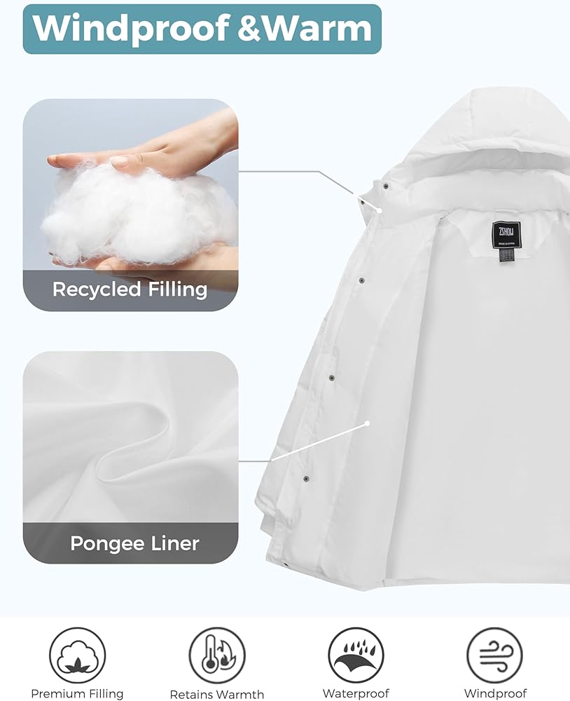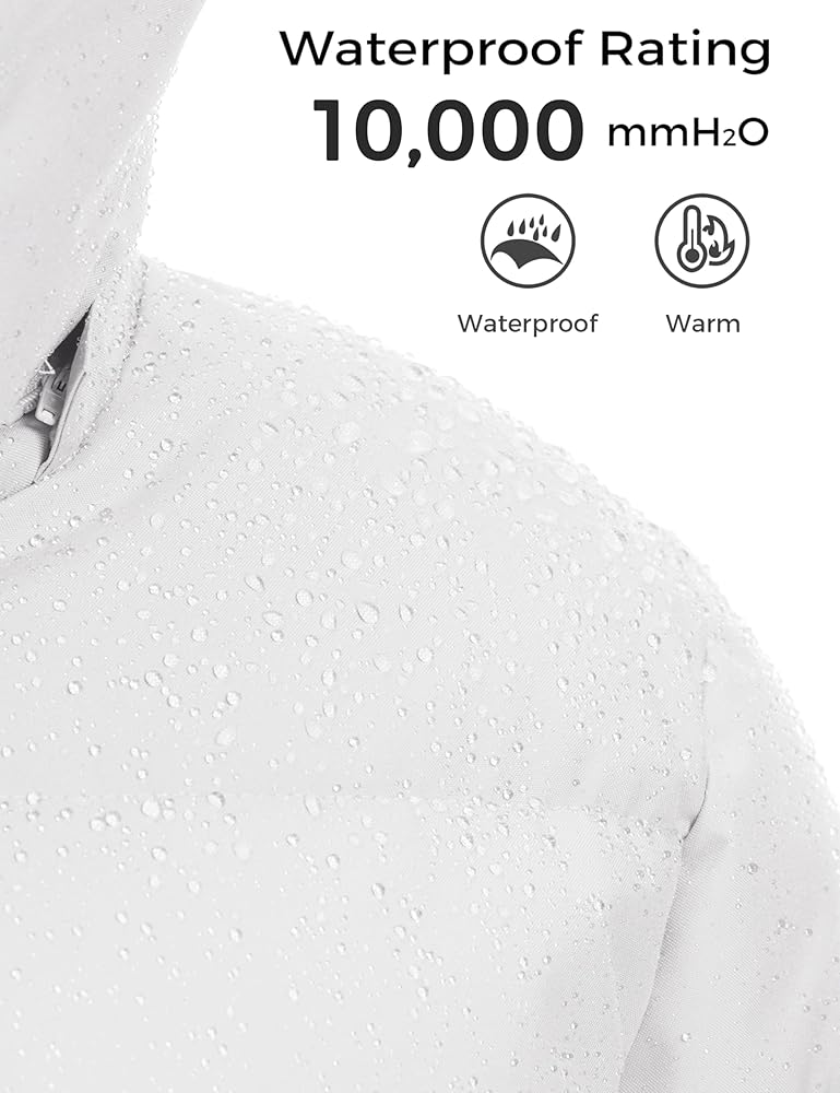 Waterproof Coat for Men - With a DWR 10,000mm waterproof coating, the men's winter coat can easily deal with moderate rainfall for several hours without wetting your bodies. You won't worry about the weather with this men's puffer jacket while hanging out.