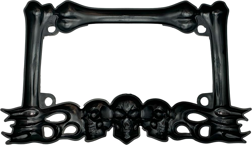 1. Transform your motorcycle with this heavy-duty skull license plate frame, crafted from high-strength zinc alloy for superior durability and rust-proof protection. Whether you're looking to protect your license plate or add a dark, rebellious touch to your ride, this frame delivers both style and function.