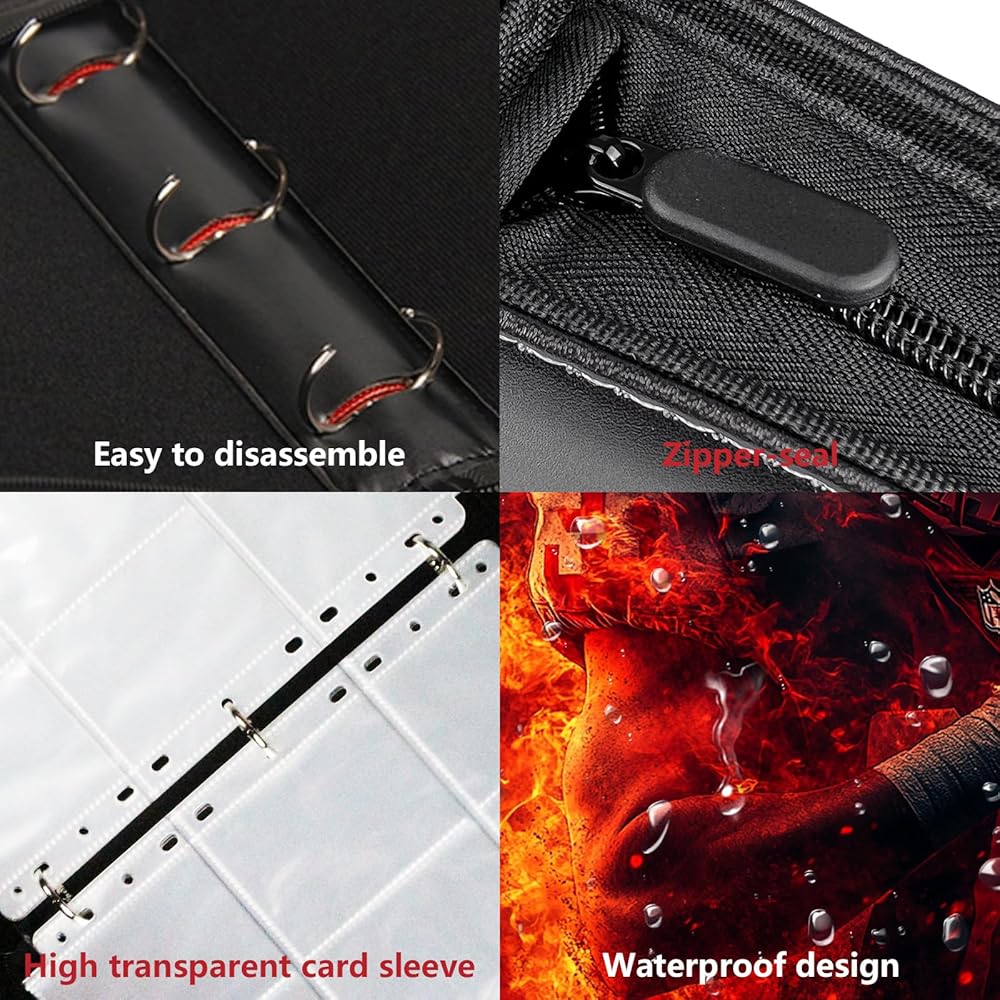 【Waterproof Protection】 Crafted with high-quality PU leather, this football trading card binder offers significant waterproof properties, ensuring your cards remain dry and protected from moisture. The external waterproof zipper effectively seals out water, safeguarding your valuable collection.