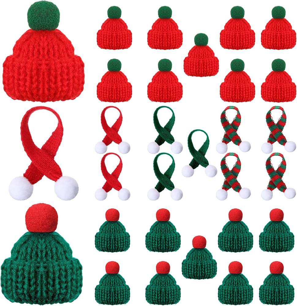 Abundant quantity: you will receive 20 pieces mini knit hats and 10 pieces mini knit scarves, the hats are red and green, 10 pieces of each color, and the scarves are combination of red and green, the sufficient quantity can meet your decorative needs, and you can use them in combination or individually