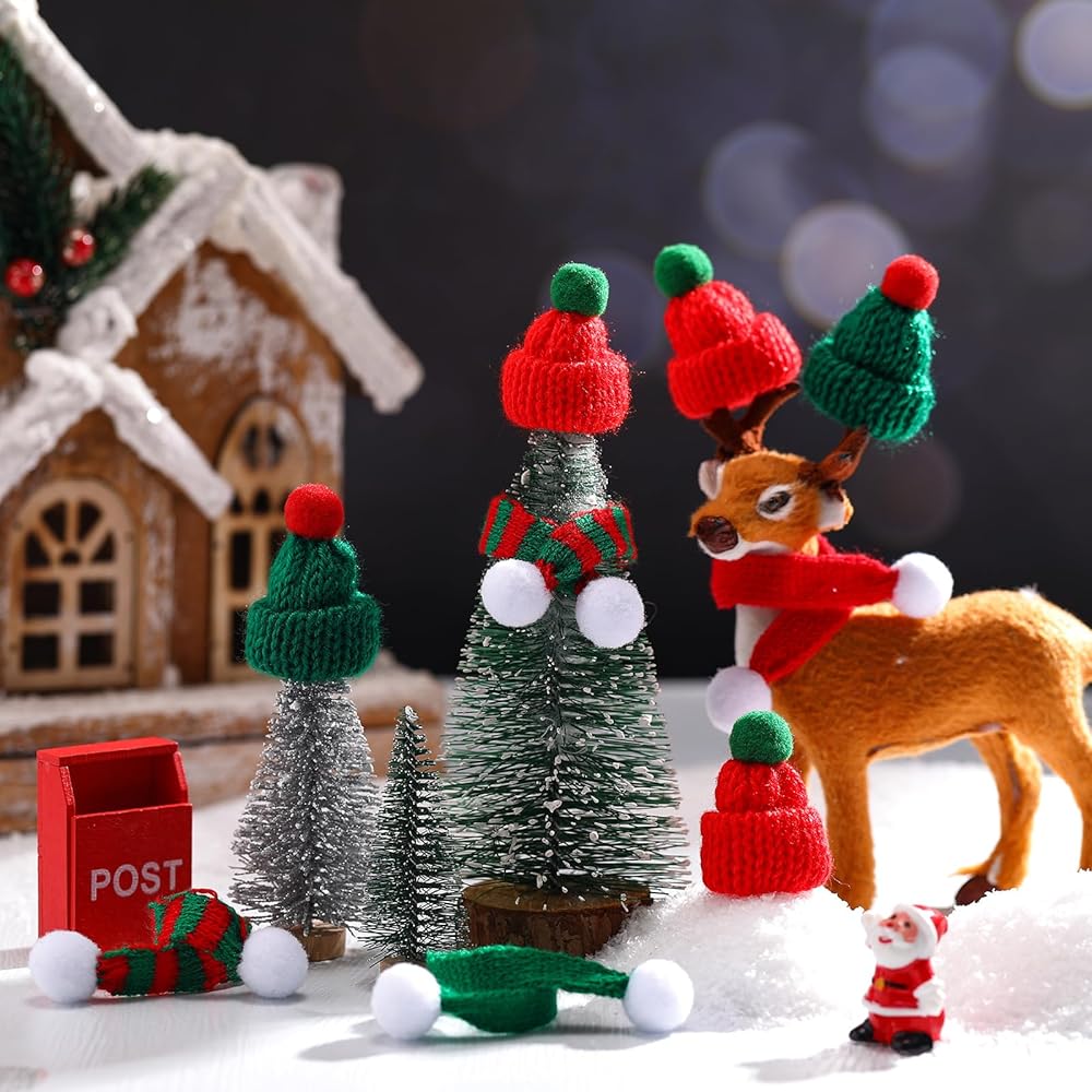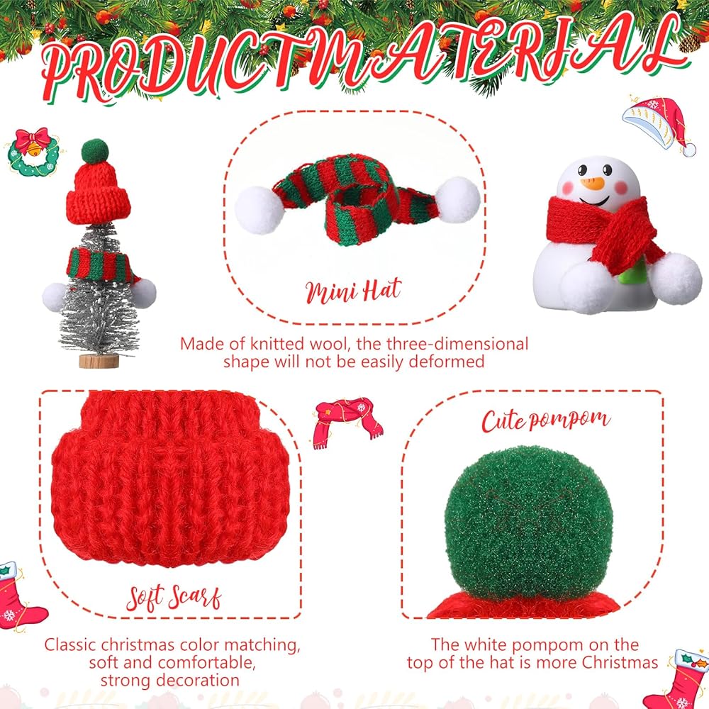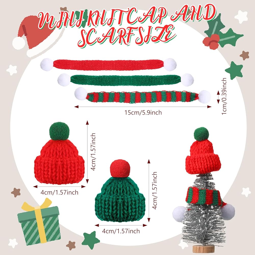 Mini hat and scarf: red and green knitted wool hat and scarf ornaments are designed to be mini, the hats are about 1.57 x 1.57 inches and the scarves are about 0.39 x 5.9 inches, the mini size makes them look cute and delicate and suitable for decoration