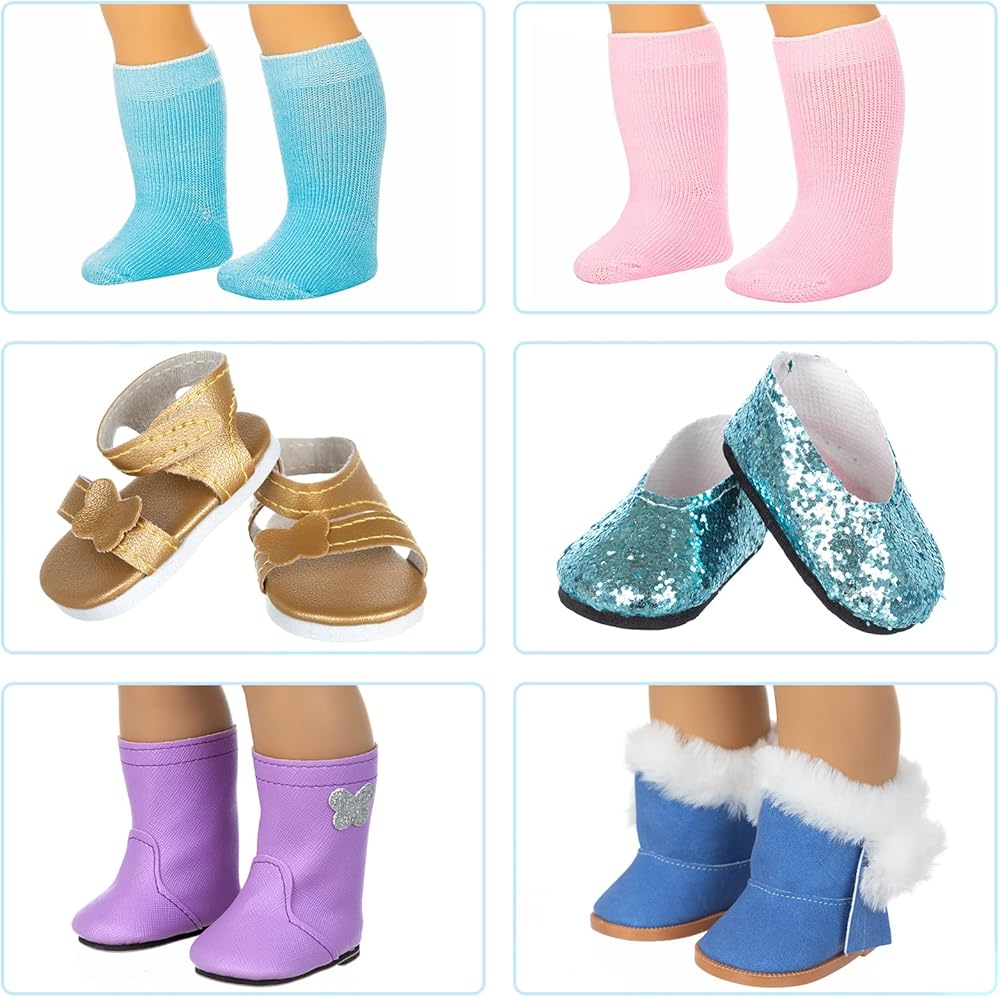 Unique design: All doll shoes are of high quality. Various styles of shoes are suitable for dolls to wear on different occasions. The use of Velcro design makes the doll easy to put on and take off. Our socks fabrics are soft and comfortable, which is very suitable for your children to play.