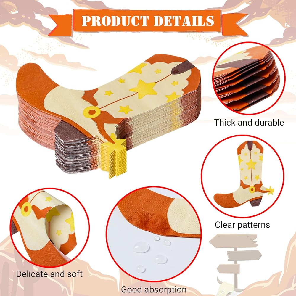 Ideal for Western cowboy-themed parties, disco cowgirl events, rodeo gatherings, and more, these napkins are the ultimate party decoration. Add a touch of Western flair to your celebrations with these Western Cowboy Boot Napkins.