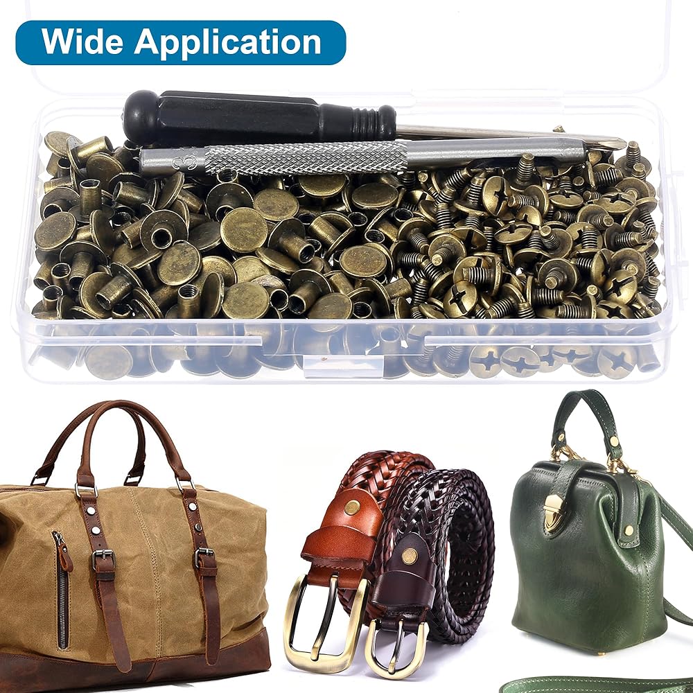 These leather craft rivets are especially suitable for DIY various leather crafts, as a fixed or decorative items used. For example: belt connection, bag decoration, clothing decoration, key bag nails, stationery ledger nails, photo album nails, calendar screws, booking, etc.