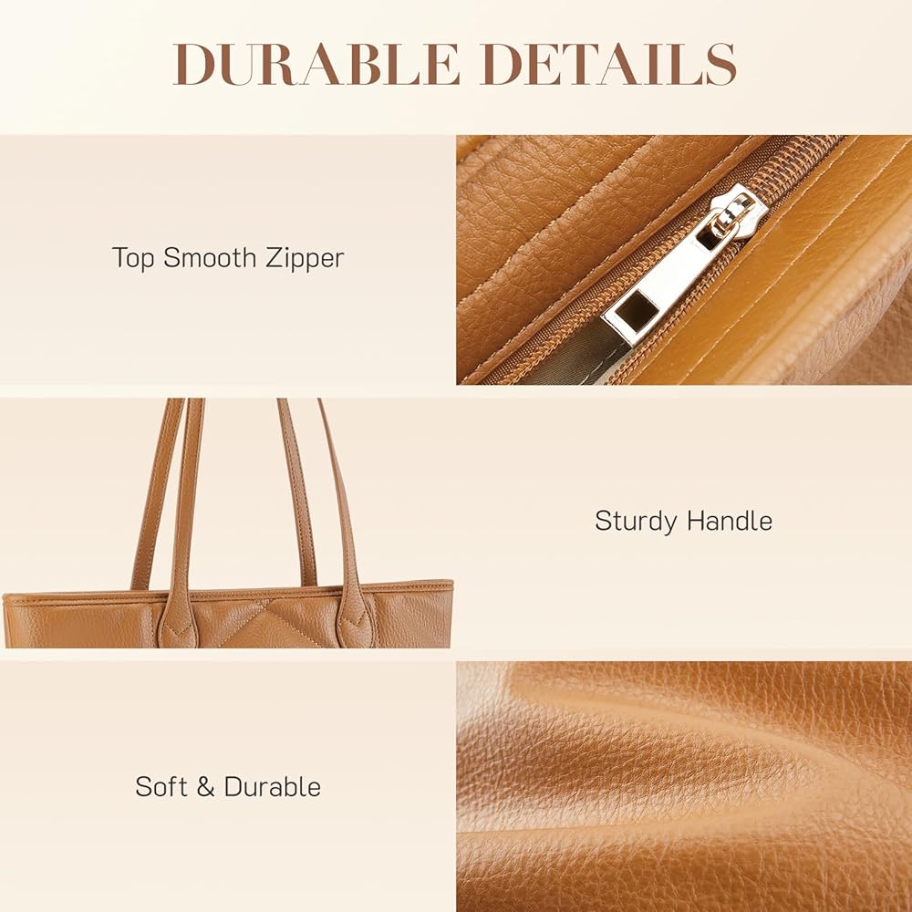 Soft Vegan Leather Tote: The tote bag is made of a lightweight material for effortless carrying. Crafted from premium vegan leather, this large tote is soft, water-resistant, and durable, ensuring a sophisticated look that lasts