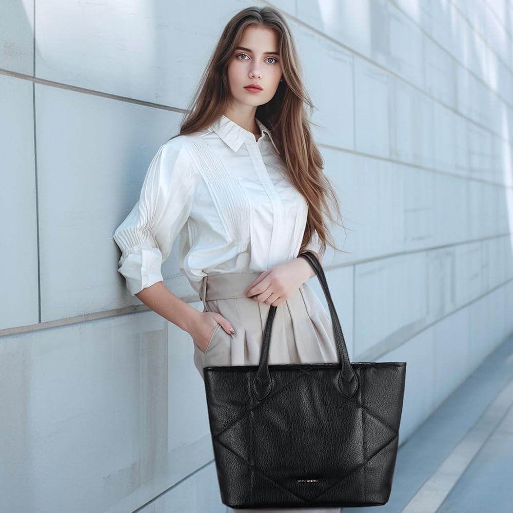 Classic Quilted Design: This tote bag for women showcases a classic quilted design with meticulous stitching and a smooth top zipper, combining style and functionality for everyday use
