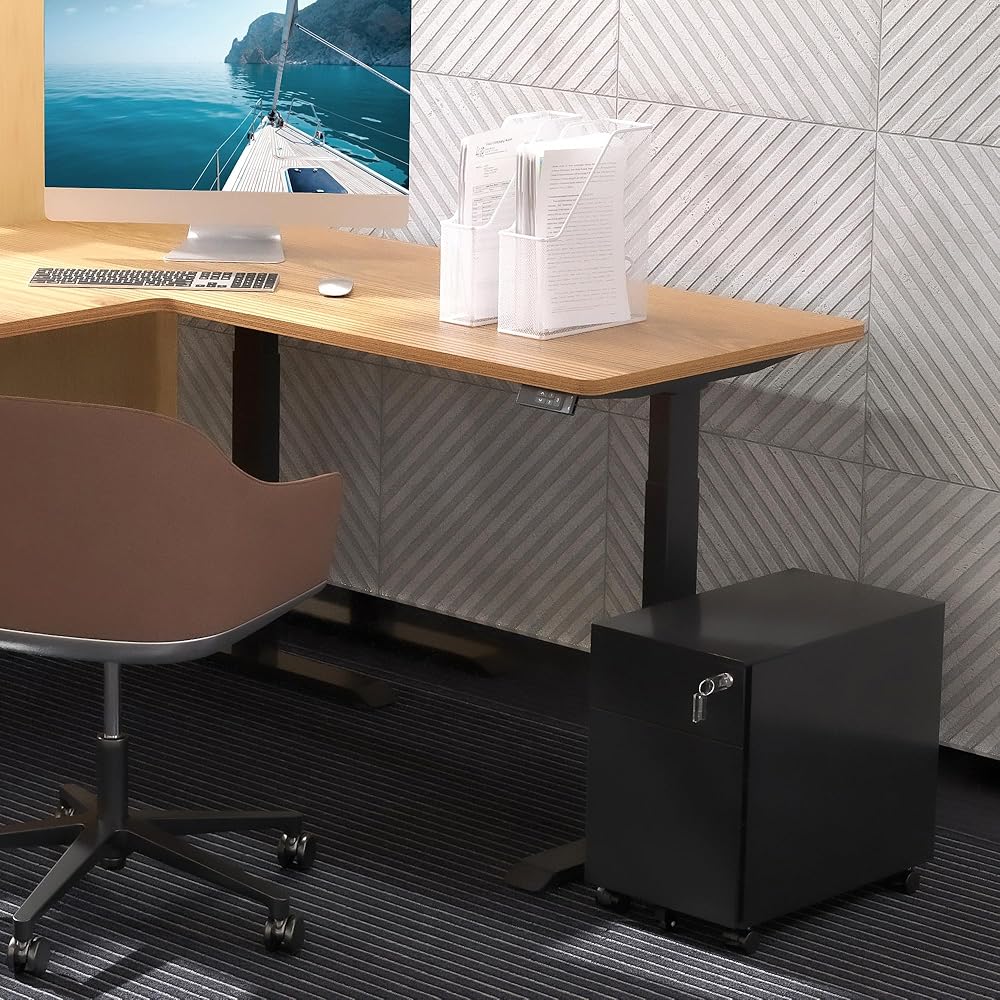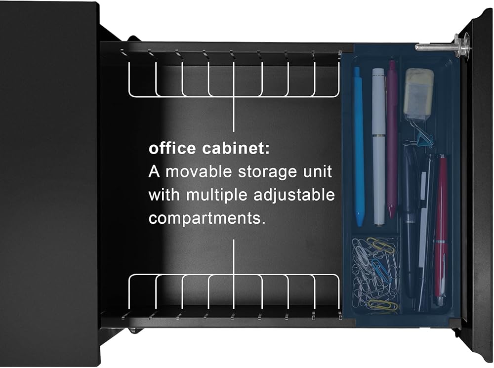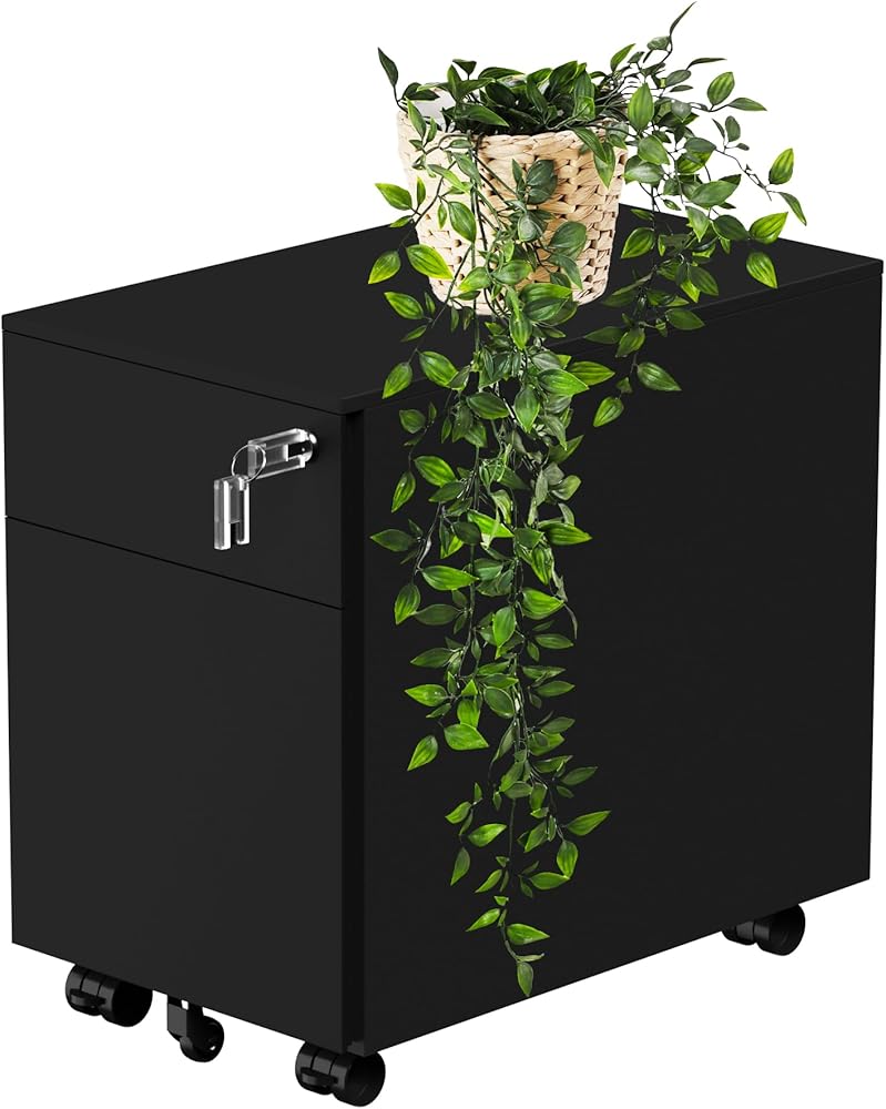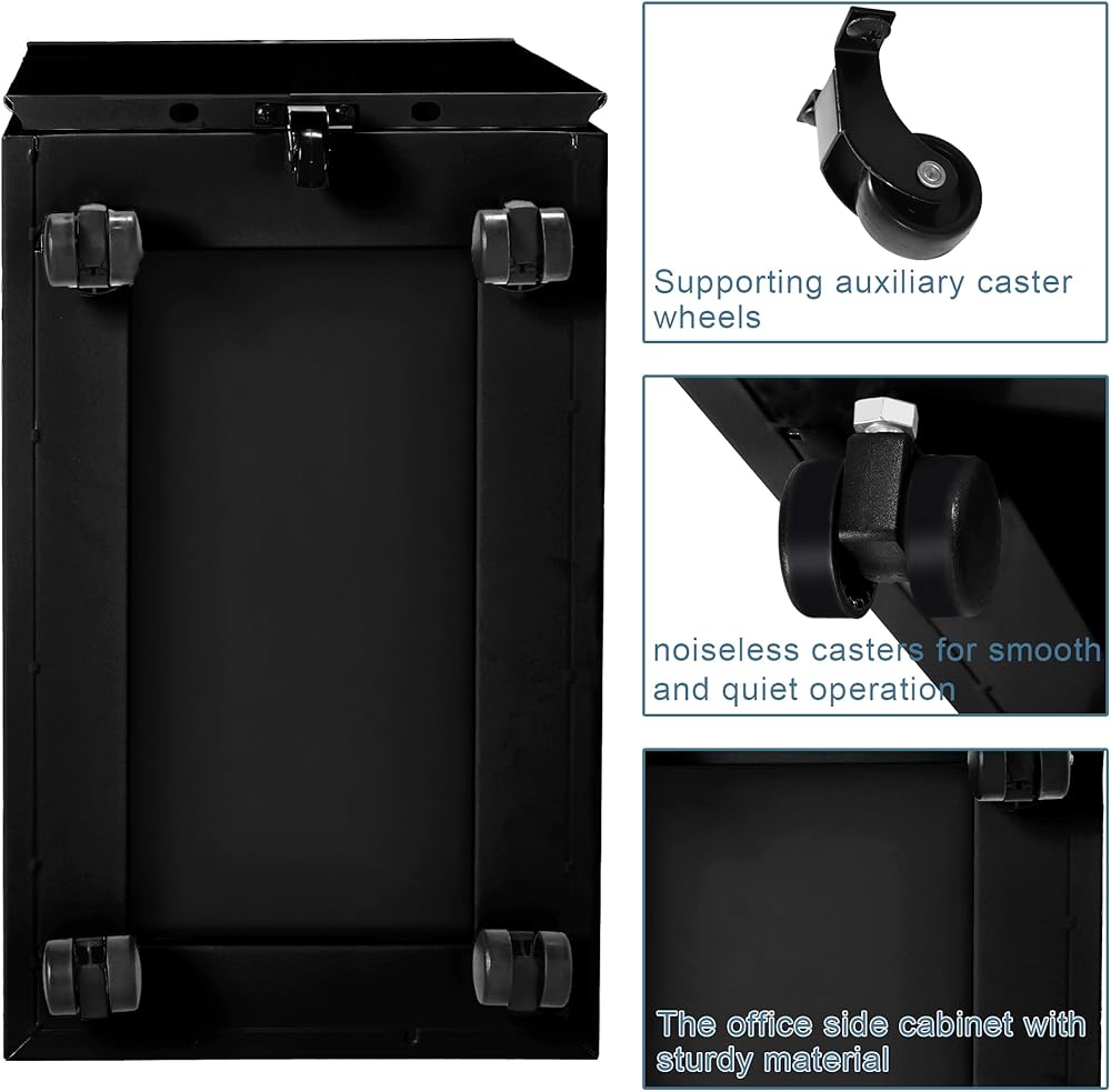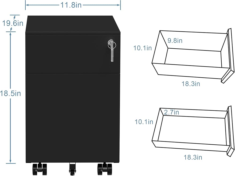 Compact in size, measuring L 19.6 inches, W 11.8 inches,H 18.5 inches , this office side cabinet features two drawers of different sizes, perfect for storing desktop stationery and files, ideal for office use