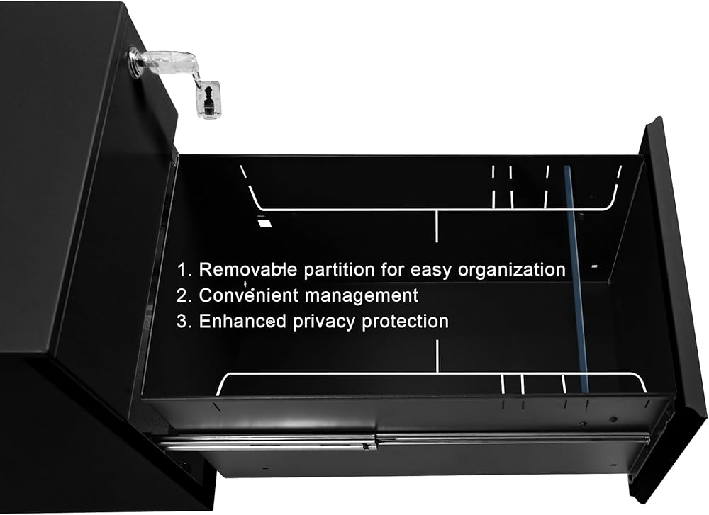 Equipped with keys, this cabinet ensures that your files and belongings are securely locked and protected