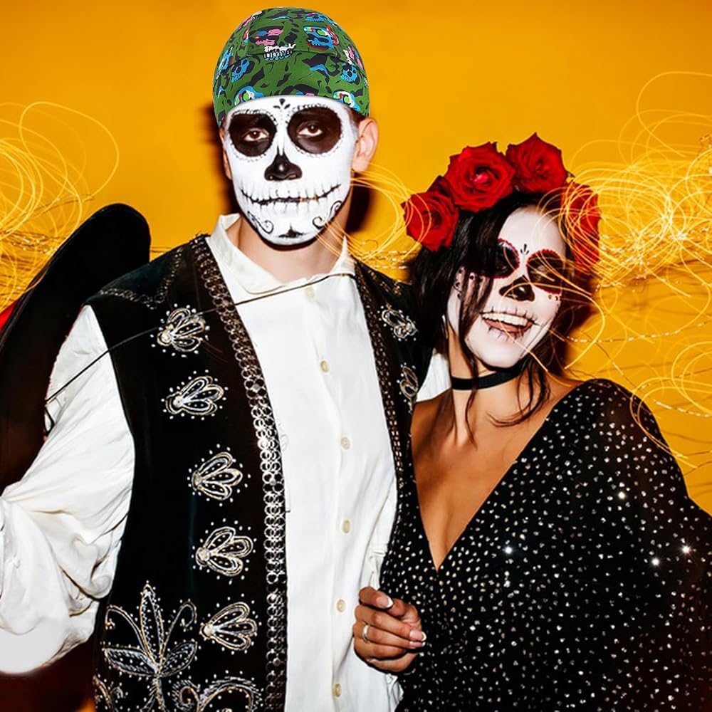 Colorful Sugar Skeleton Do Rags Skull Caps: The classic skull pattern cycling cap can showcase individuality and a daring sense of fashion; Whether for casual or formal occasions, this classic color scheme can create an infinite sense of fashion and charm, Match with your various sports and apparel or working costumes