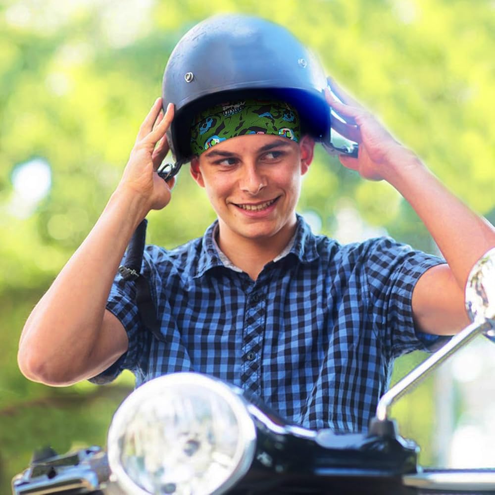 All-Season Cycling Accessories Choice: Stylish sweathead motorcycle headwrap suitable for daily wear or working days,can be used as a cycling cap,do rag,headscarf,helmet liner,beanie cap,skull cap,chemo hat,sports sweatband,biker headwrap,sleeping cap,bandana hat even wave caps.Great outdoor headwear accessories gift for you or your family or friends on Birthday,Thanksgiving, Father's Day,Christmas, weekend warriors, throttle jockeys, construction workers,halloween, day of the dead
